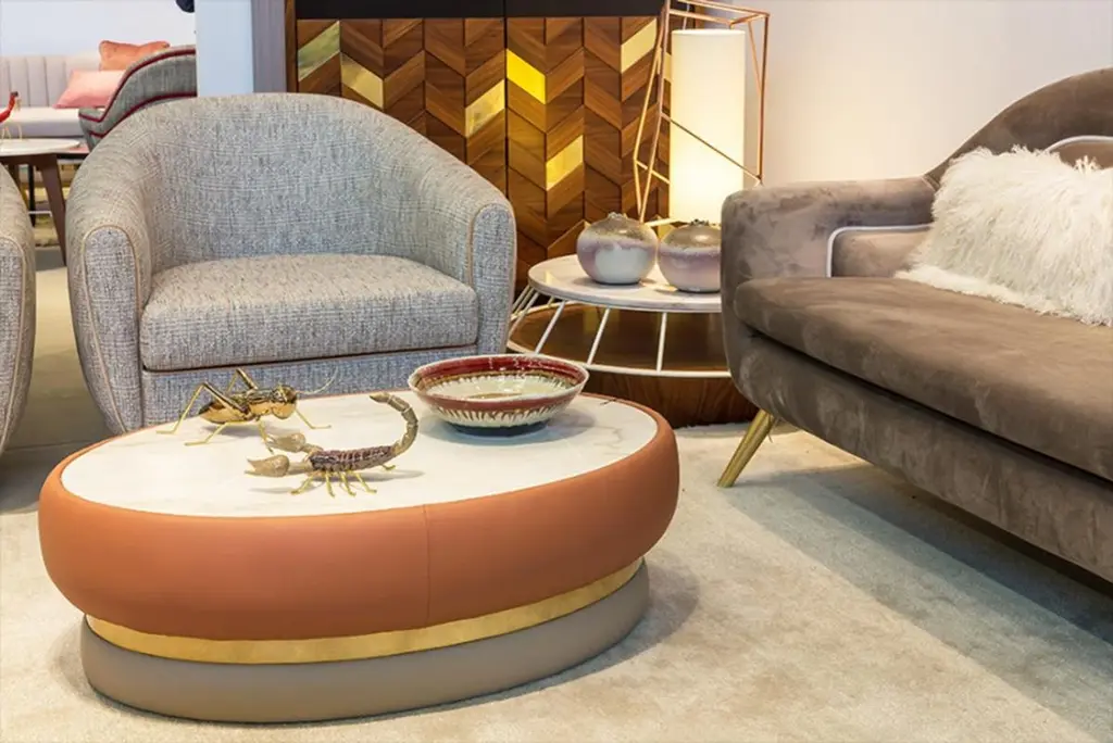 Finishes: Polished Brass ringTop Synthetic Leather - Laser BlossomBase Synthetic Leather - Laser Vintage RoseTable Top Marble EstremozChloé center table combines tailoring ideas from the fashion world with the creativity of modern interior design. Top in Estremoz white marble, an upholstered synthetic leather base with a brass rim creating the illusion of a feminine waist. Made to Order. For sales with delivery address within European territories, VAT will be charged additionally to the stated price.