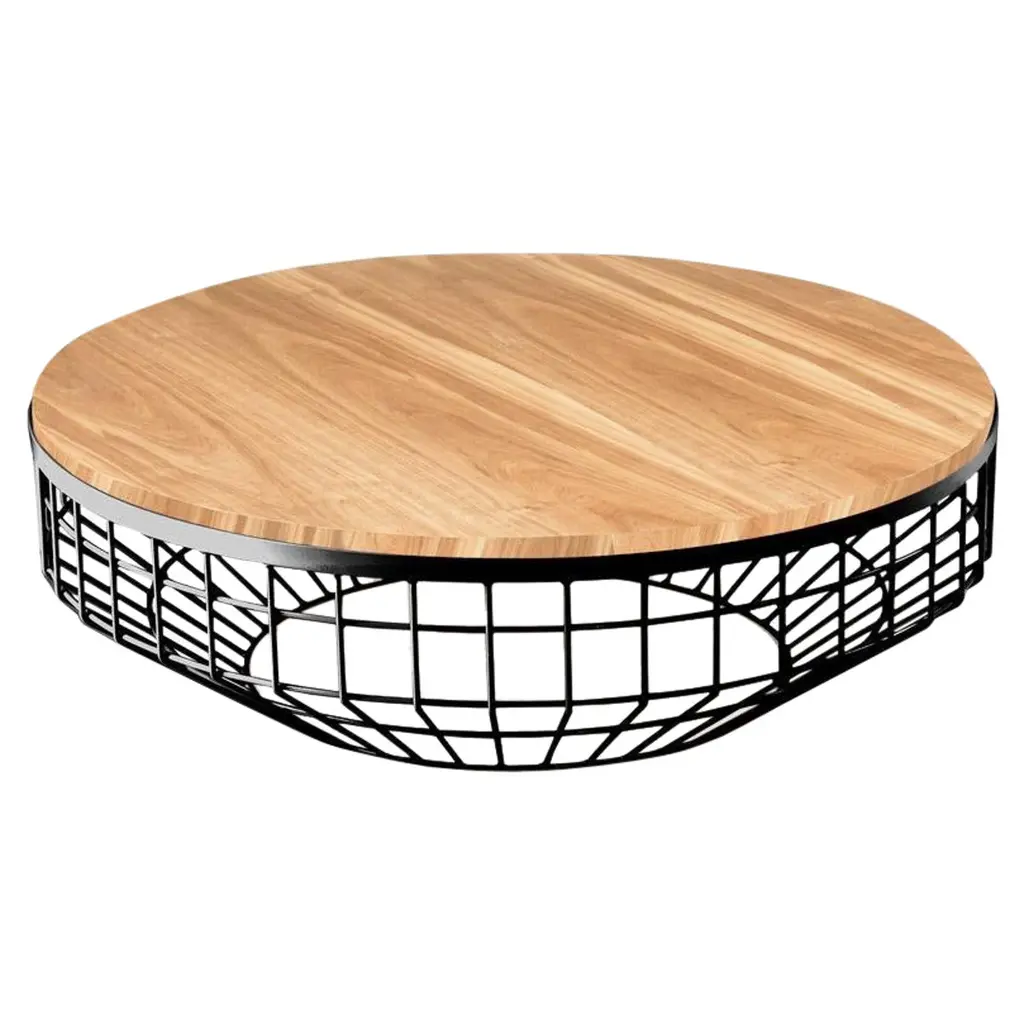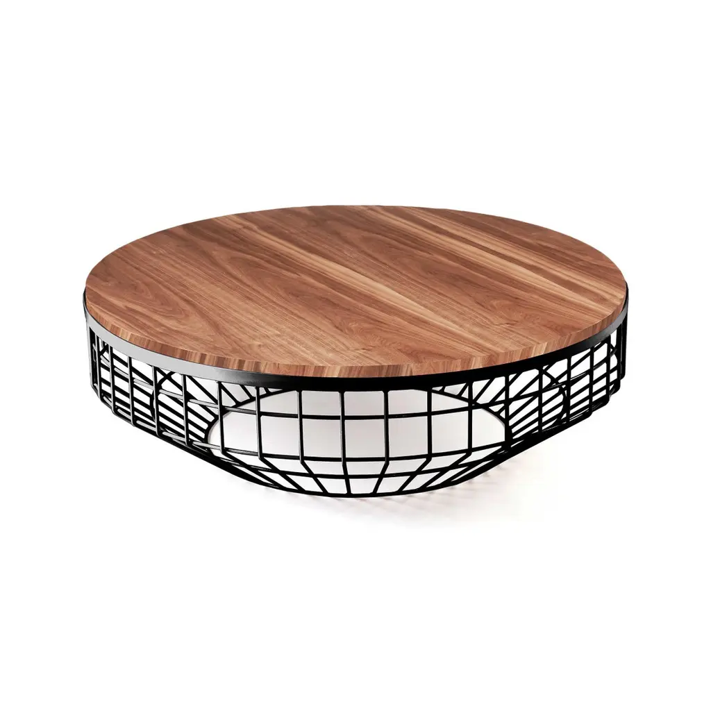 Sleek and light, these center tables are original and fresh. The base is made of lacquered metal and the top of plywood veneer. A great color accent to your room. Made to Order.