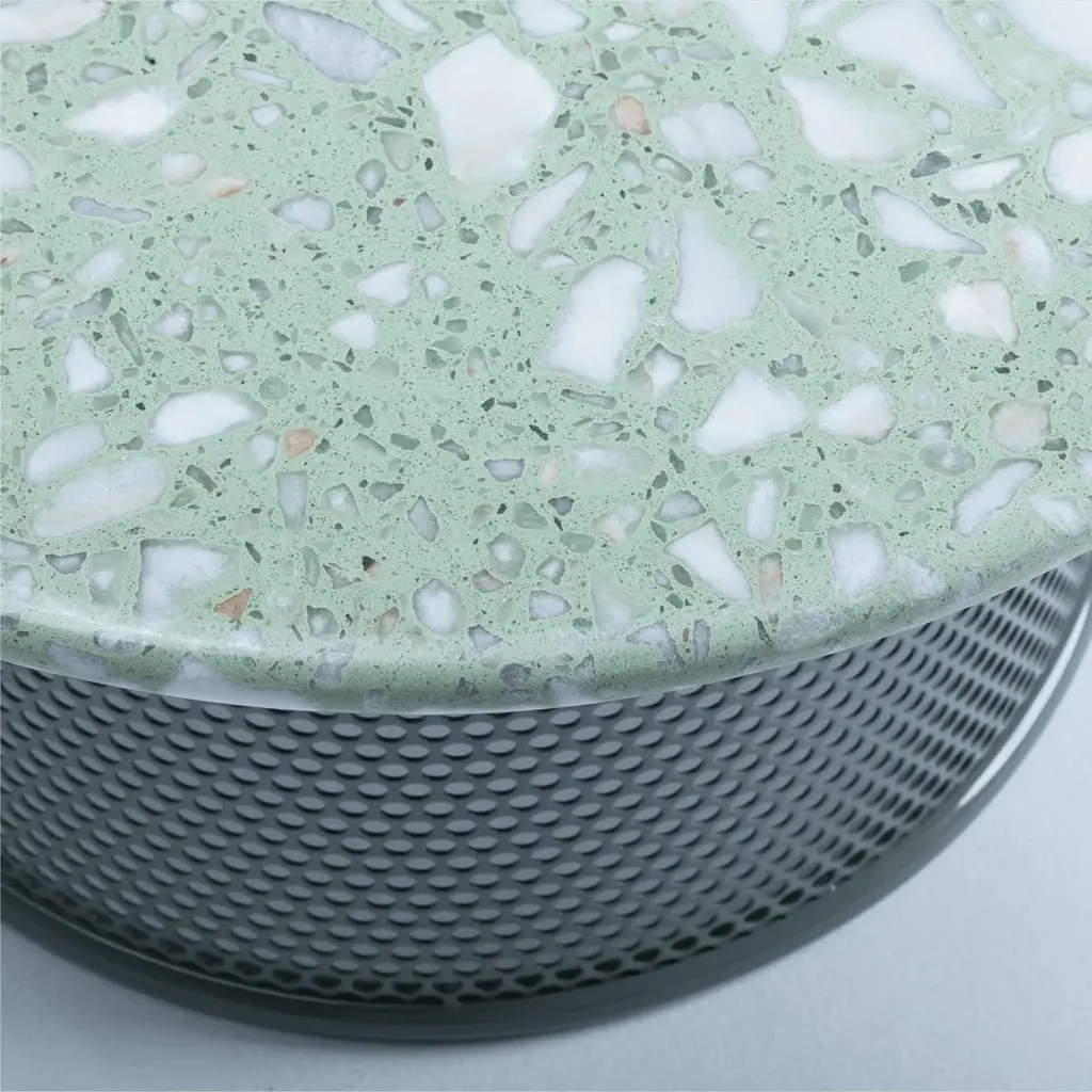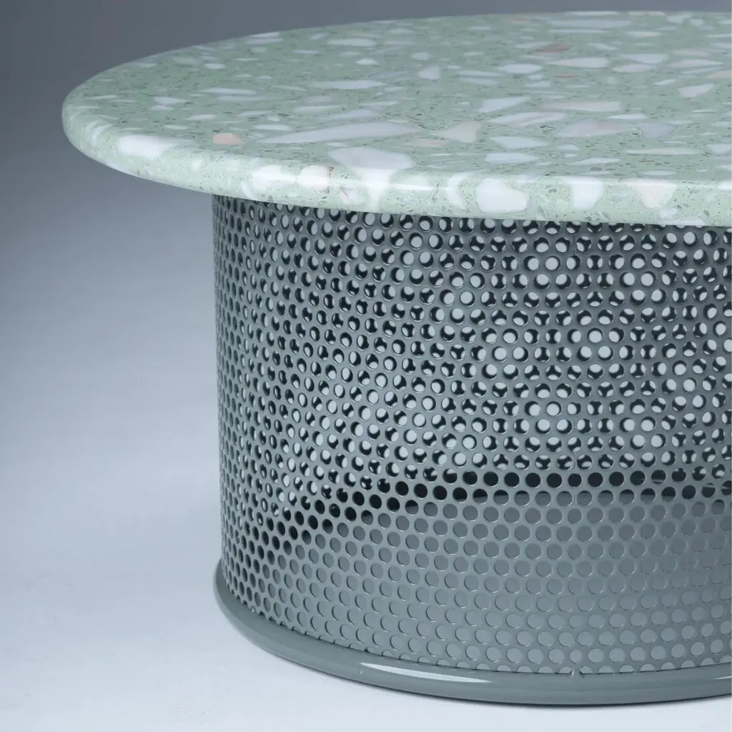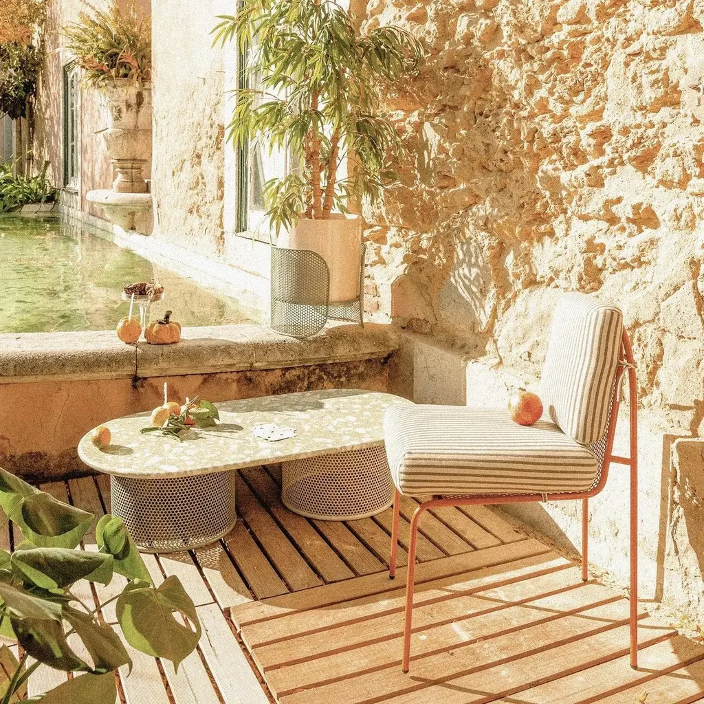 Our newly unveiled collection is meticulously handcrafted in Portugal. Departing from conventional norms, weembrace a palette of unconventional materials, including different marble stones, an array of Merrazzo tones,robust metals and enduring ceramics to create a thoughtfully curated collectionThis collection is a testament to versatility, seamlessly blending sophistication and comfort to elevate theoutdoor space.Designed to celebrate the outdoors, each piece in our collection embodies the symbiosis of elegance andfunctionality. Whether indulging in stylish dining or serenely lounging, this ensemble is a homage to the art ofoutdoor living.outdoor usage: outdoor lacquered Ivory metal and Terrazzo Sage top