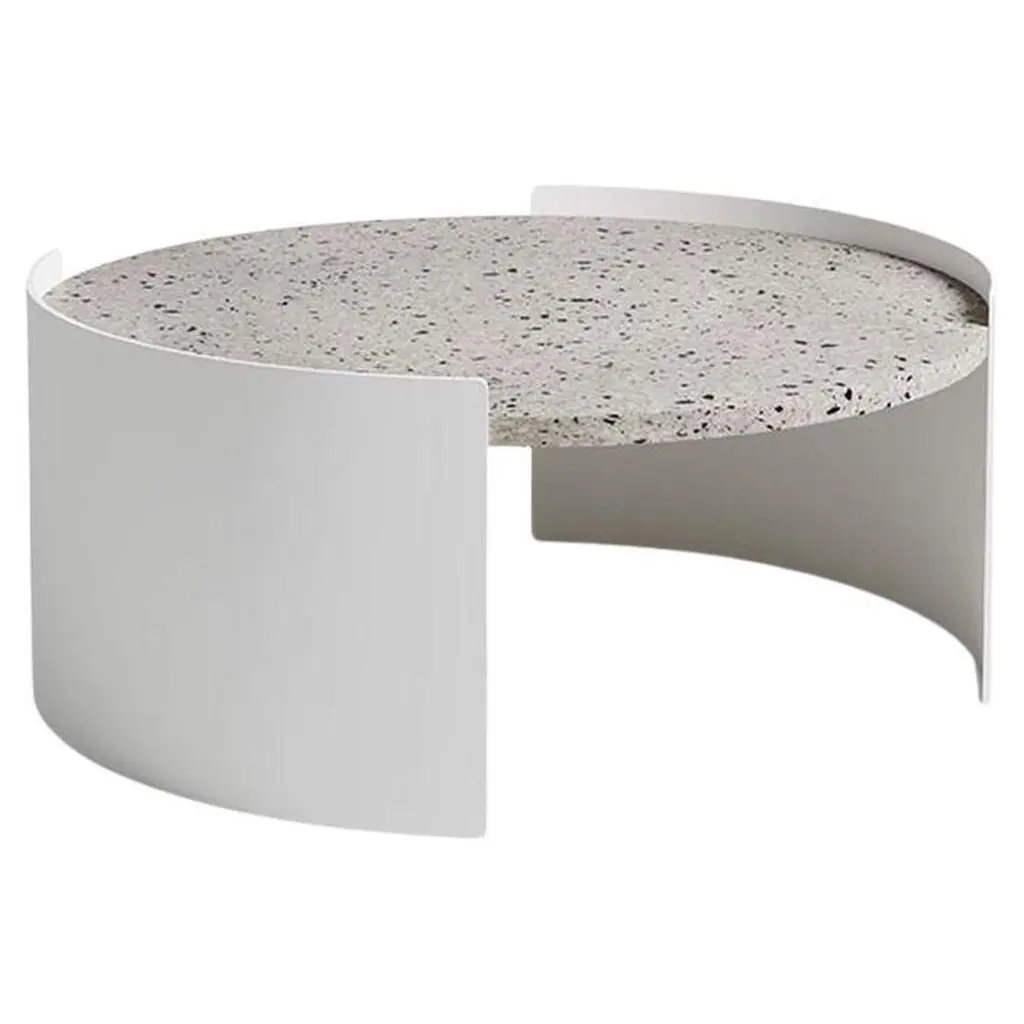 Contemporary Outdoor Riviera Center Table In Ivory Lacquered Metal And Marble