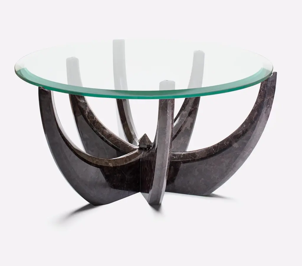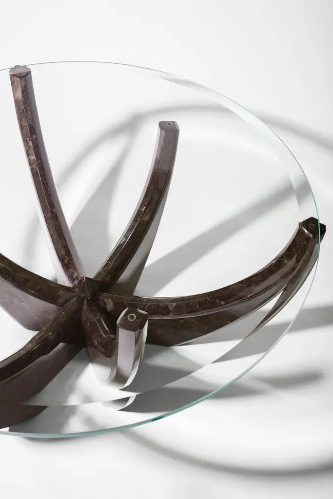 The diamond tulip center table, 1 of 1 by Grzegorz MajkaEdition 1 of 1Dimensions: 31.50 x 31.50 x 17.72 in.Materials: glass top. Marble onyx base. The Diamond collection proves that everything is possible. It goes beyond the stereotypical thinking thatstone is such a heavy and demanding material that could not be processed in any desired way. Is it really true? Is it better to use the artificial alternative to the stone? No answer is needed here as the Diamond collection defends itself. Stone plays the main role and is our hidden and irreplaceable diamond. The craftsmanship of the base processing, its unusually designed shape combined with the glass top, adds notonly energy but also a strange lightness to the whole project. A beautiful and exclusive collection will satisfy the requirements of many sophisticated tastes and will add an unusual look to any interior.Grzegorz Majka is a self-taught Polish artist who explores the concepts of modularity, sculptural form, and artisanal processes in the design of furniture and lighting. His work seamlessly blends craft and contemporary design, incorporating high-quality noble materials like natural stone, wood, metals, and hand-blown glass. Guided by a deep respect for the inherent character of materials, Grzegorz highlights natural irregularities, textures, and patterns - veins in stone, the living patina of untreated metals, the organic feel of brushed surfaces. These elements are not hidden but embraced, inviting collectors on a sensory journey through touch and time.His studio practice focuses on handcrafted limited-edition furniture that is not only functional, but also living, authentic, collectible art.