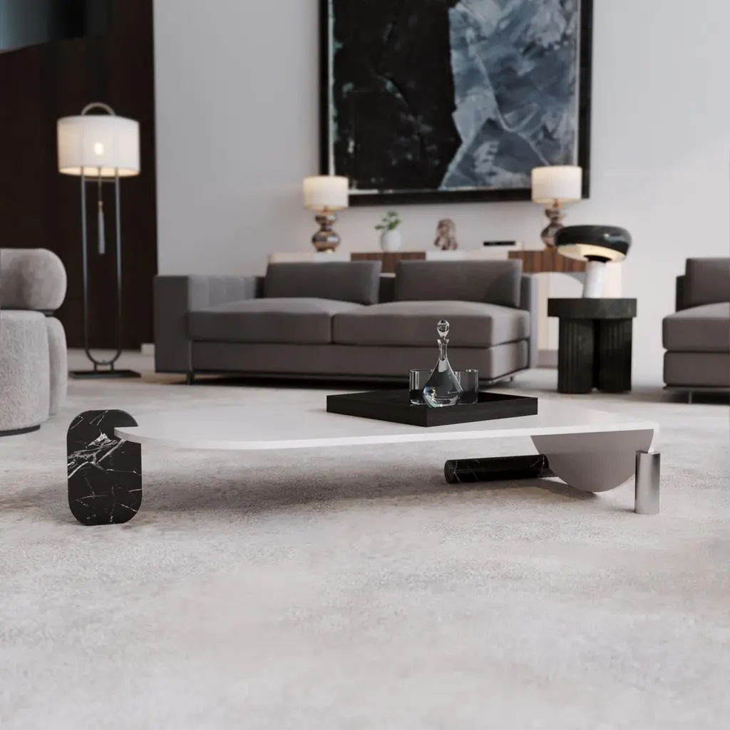 The essential shapes of these tables play between them in an alluring game of proportion and color which results in the creation of a perfect balance and tension of material and negative space. The absence of figurative shapes allows you to look at this piece from different angles and imagine various things. Made to Order. For sales with delivery address within European territories, VAT will be charged additionally to the stated price.