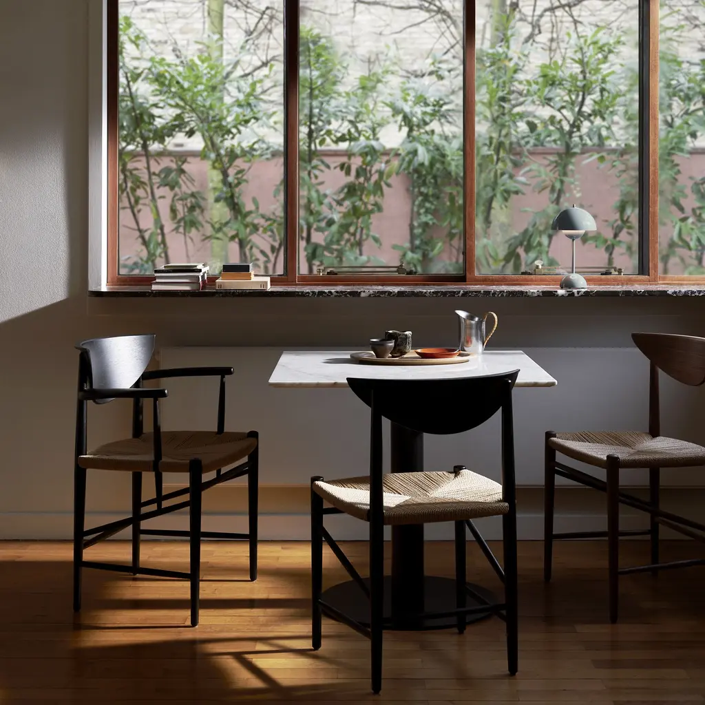 Sweden-based designer Sami Kallio adds a bar and counter table in a spin-off from his signature In Between series for Copenhagen’s &Tradition. The square tabletop is available in sumptuous black Marquina or white Carrara marble or a Fenix nano laminate which provides superior heat and scratch resistance as well as a soft-to-touch texture. The rounded steel base also offers a choice in matte black or a bronzed finish.