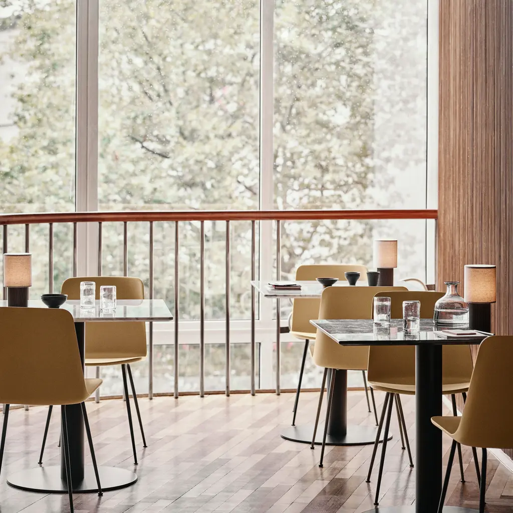 Sweden-based designer Sami Kallio adds a bar and counter table in a spin-off from his signature In Between series for Copenhagen’s &Tradition. The square tabletop is available in sumptuous black Marquina or white Carrara marble or a Fenix nano laminate which provides superior heat and scratch resistance as well as a soft-to-touch texture. The rounded steel base also offers a choice in matte black or a bronzed finish.