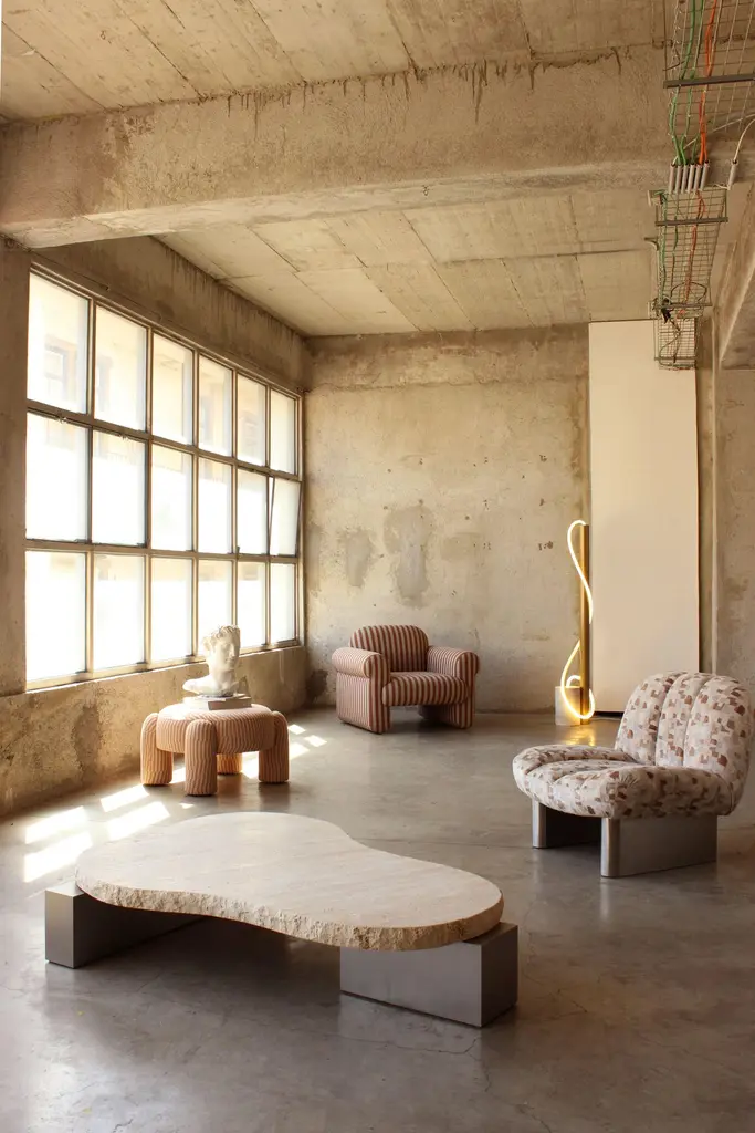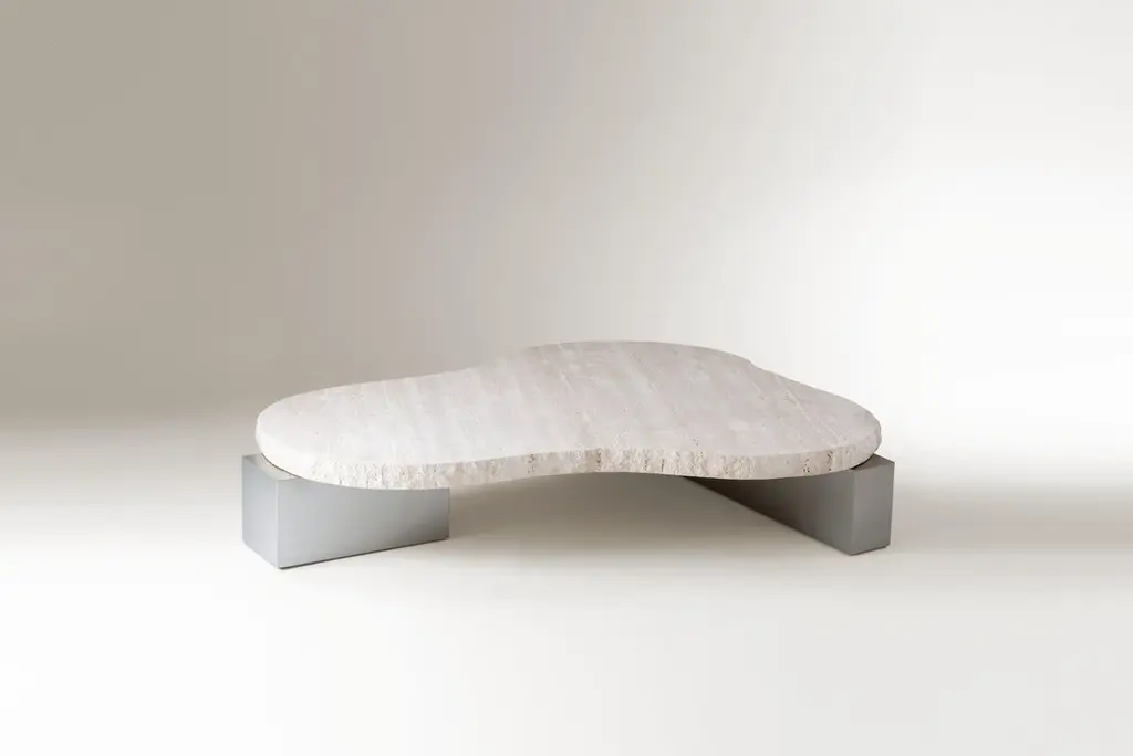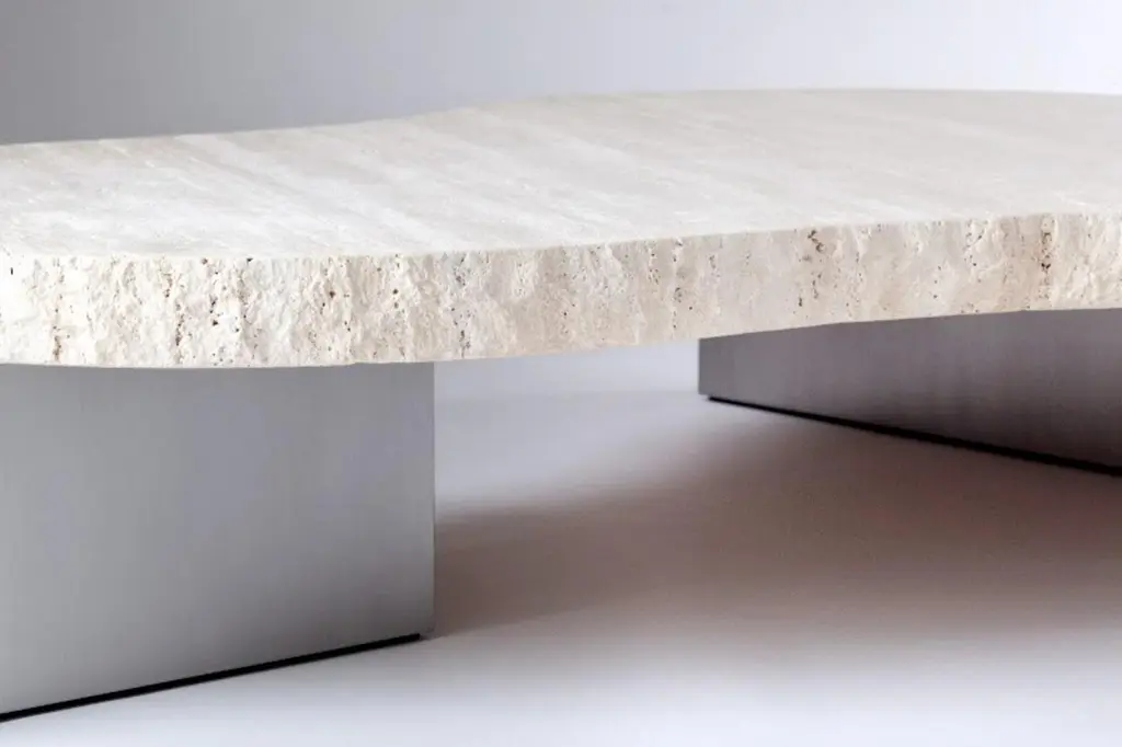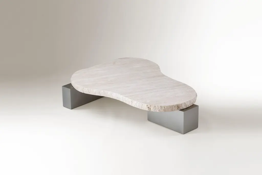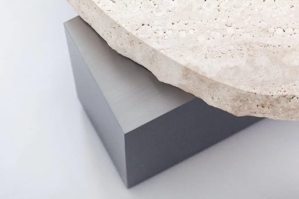 A harmonious exploration of contrasts, the On the Rocks table bridges the organic and the futuristic. With a hand-hammered travertine top that exudes raw, natural beauty and a sleek nickel base that reflects modern elegance, this sculptural table redefines sophistication. Designed as a piece to be admired and cherished, it invites a dialogue between the tactile and the refined, merging timeless craftsmanship with avant-garde artistry.