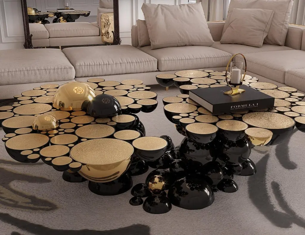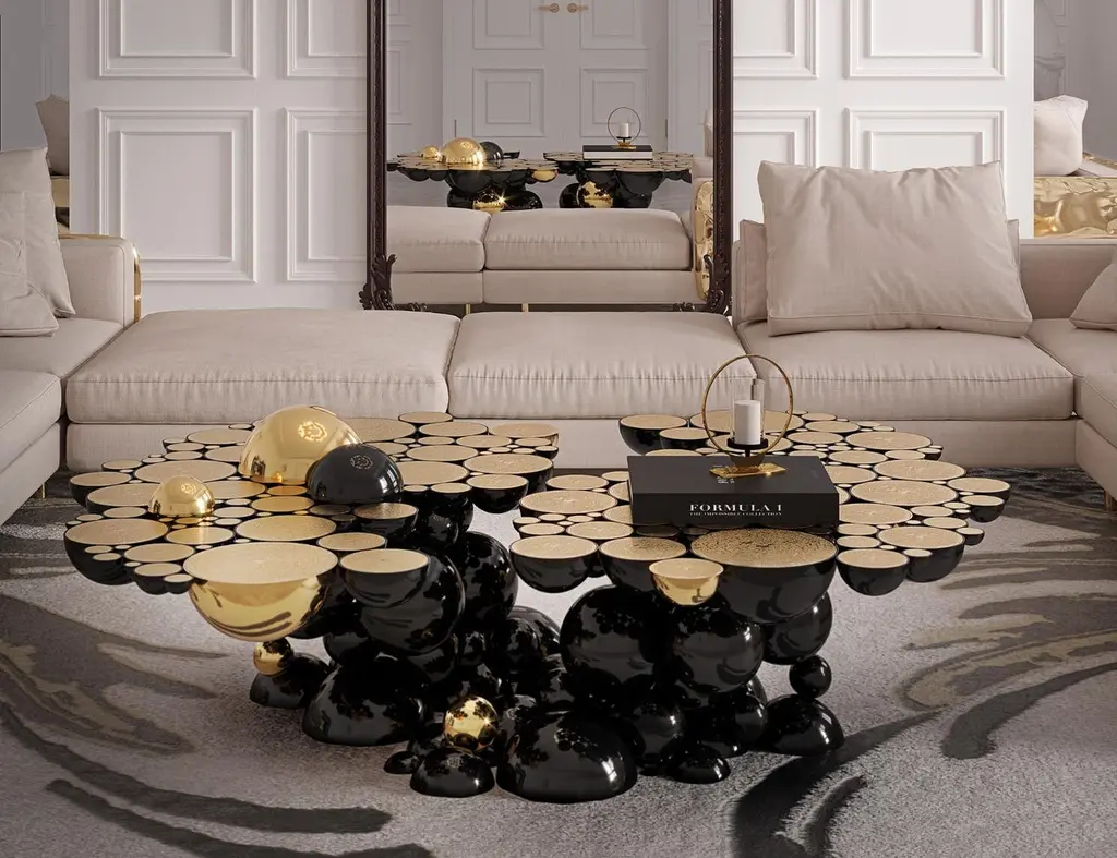Newton Black Center Table - Hand-Crafted Aluminum Lacquered Gold - Boca Do Lobo