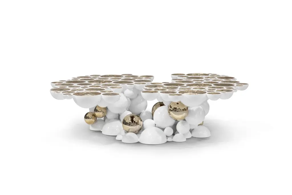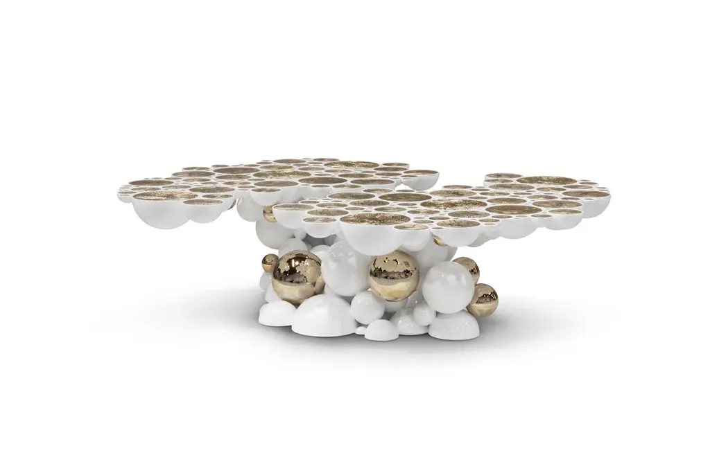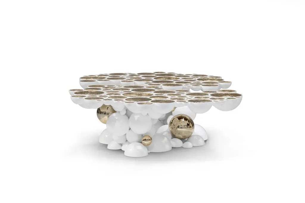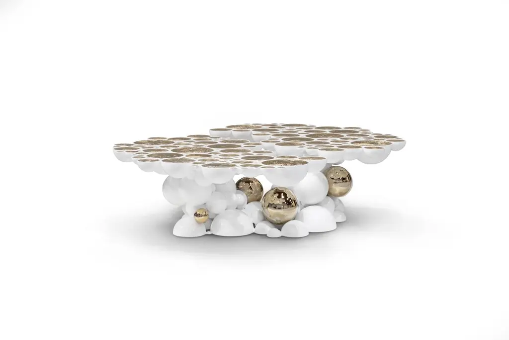 Newton White Center Table - Hand-Crafted Aluminum Lacquered Gold - Boca Do Lobo