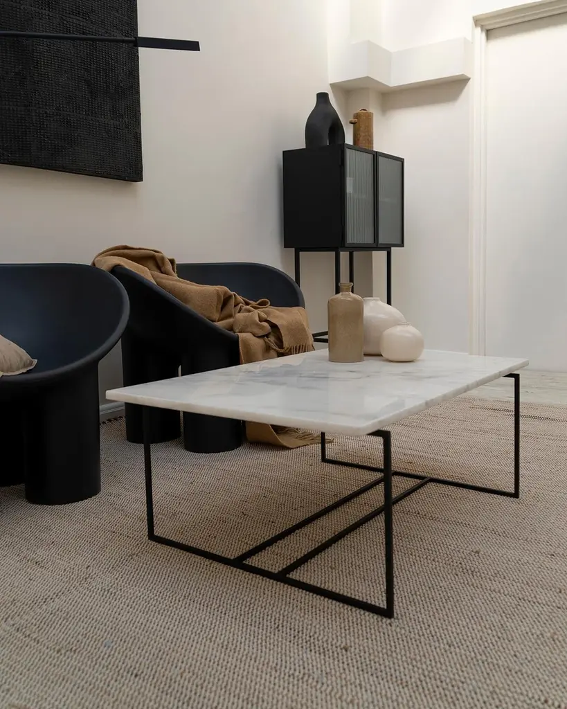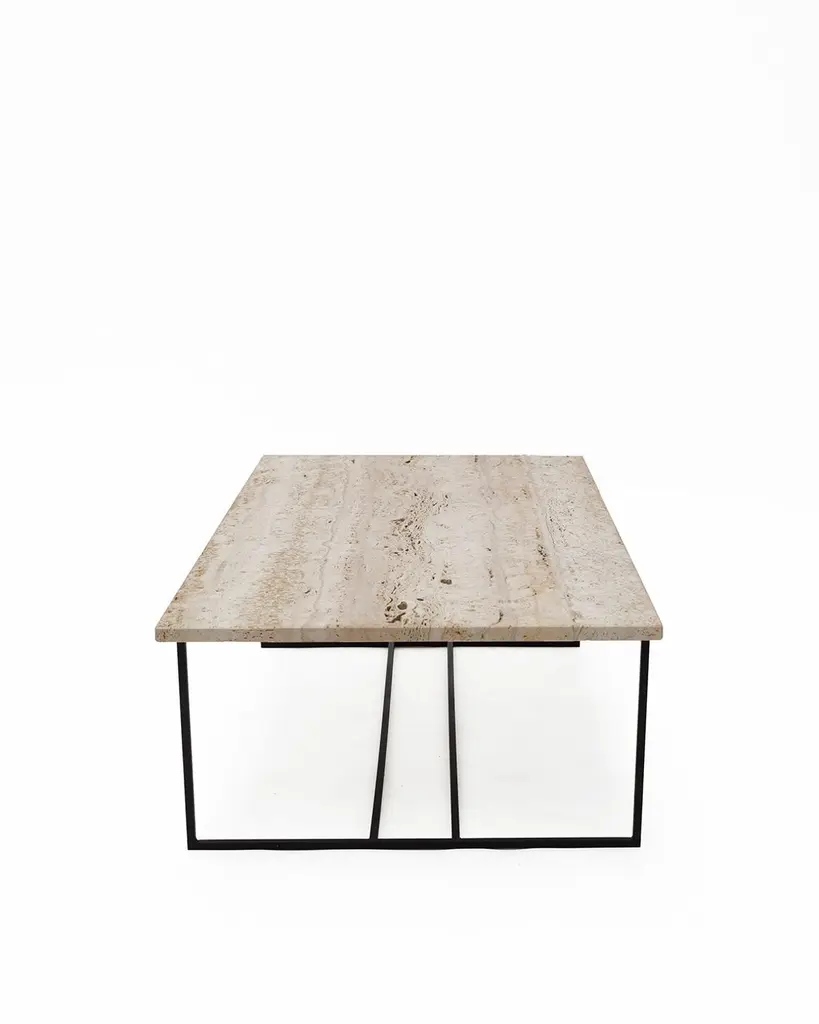 Object 042 center table by NG DesignDimensions: D 90 x W 60 x H 37cmMaterials: Powder coated steel, Travertine/Marble Bianco Ibiza/ Marble Nero marquina.Also available: All of objects available in different materials and colors on demand.An offer for lovers of classic design. A simple frame, timeless materials and excellent workmanship make the table fit into almost any interior design style."Our brand was created out of a passion for unconventional design. The furniture we produce is characterized by the highest quality and attention to detail. Each piece of furniture is handmade in Poland and its design defies a traditional approach. standard of interior design. to an object of uniqueness, which makes it a form in itself".