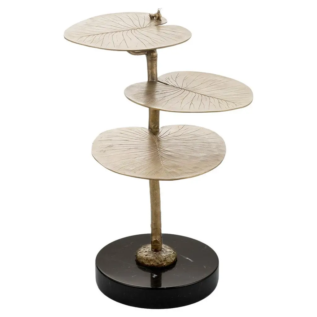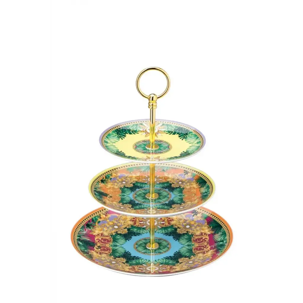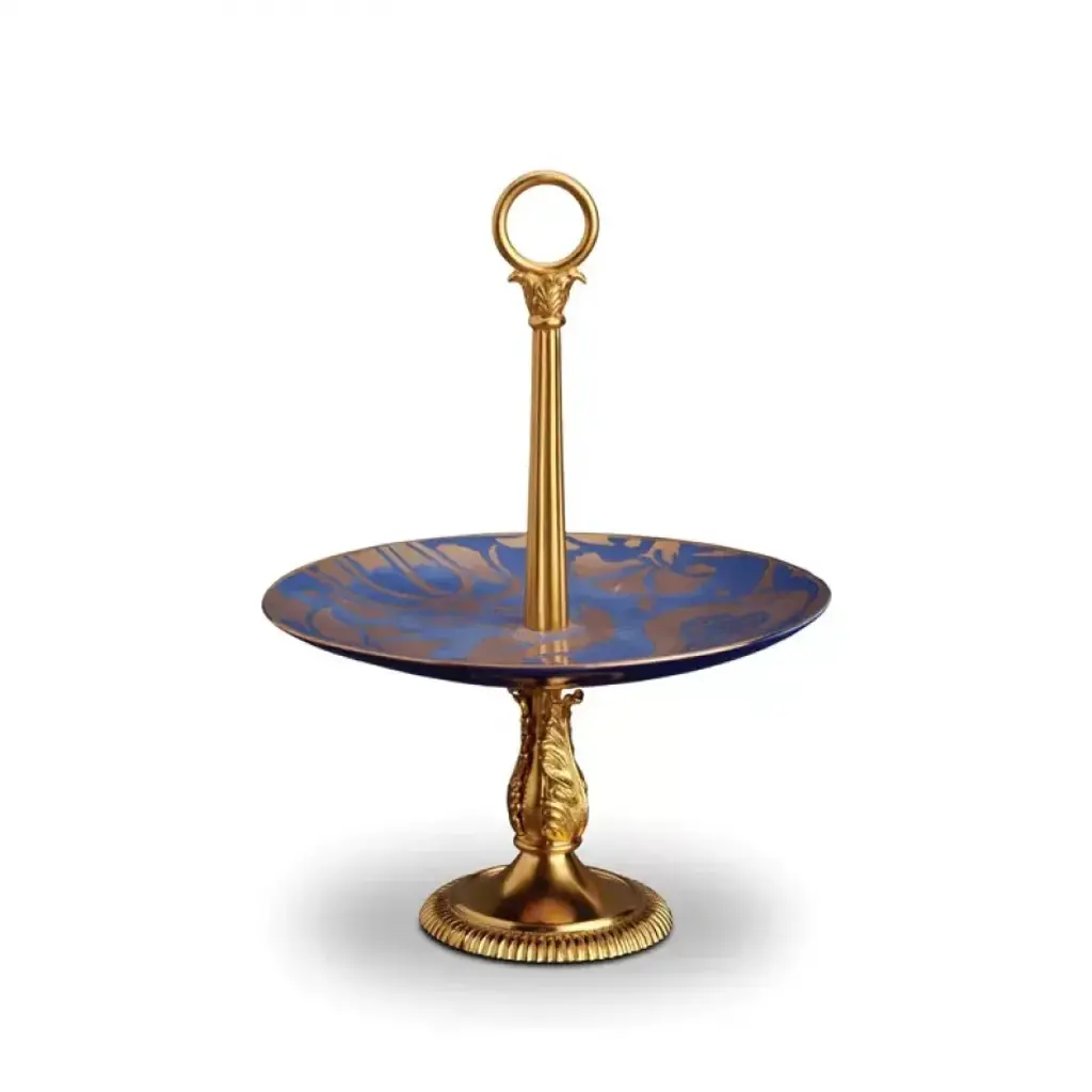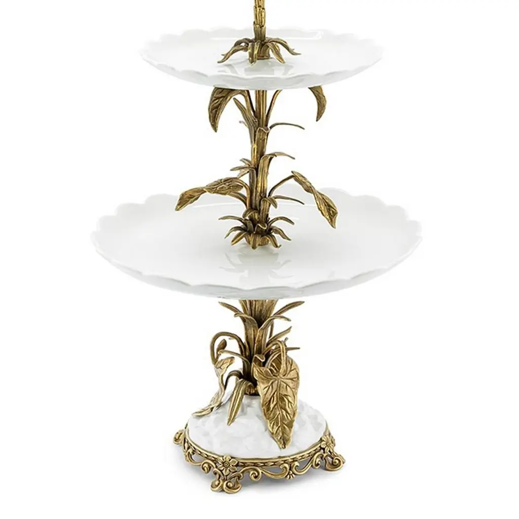 Serving piece palms center table with2 plates and base in enameled porcelain.With solid bronze structure and details invintage finish. Elegant piece.