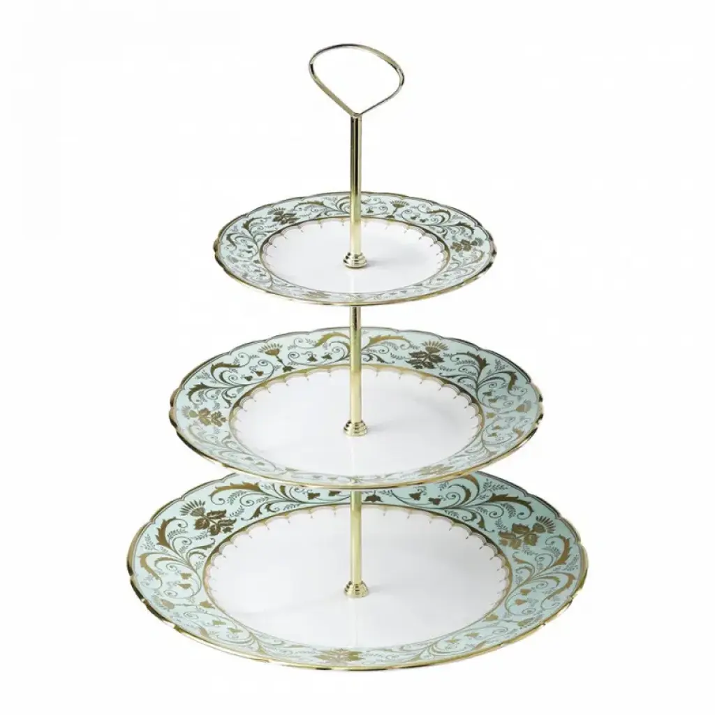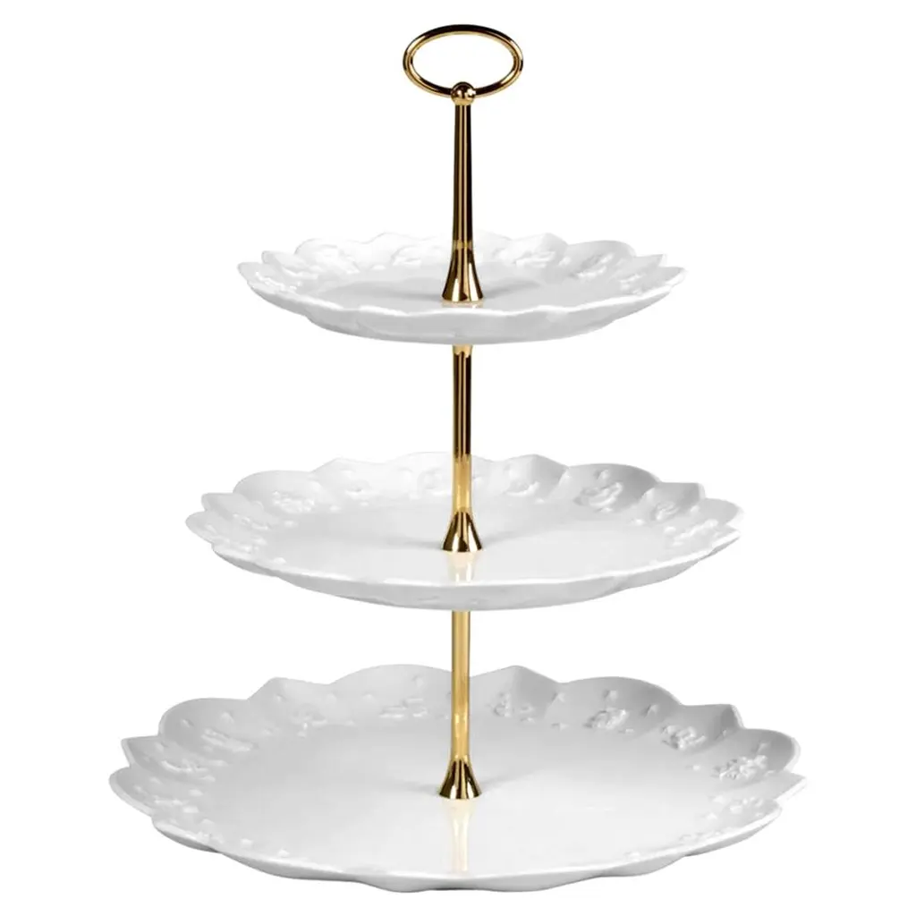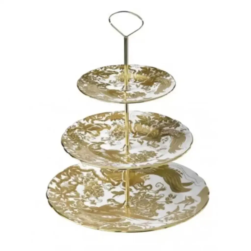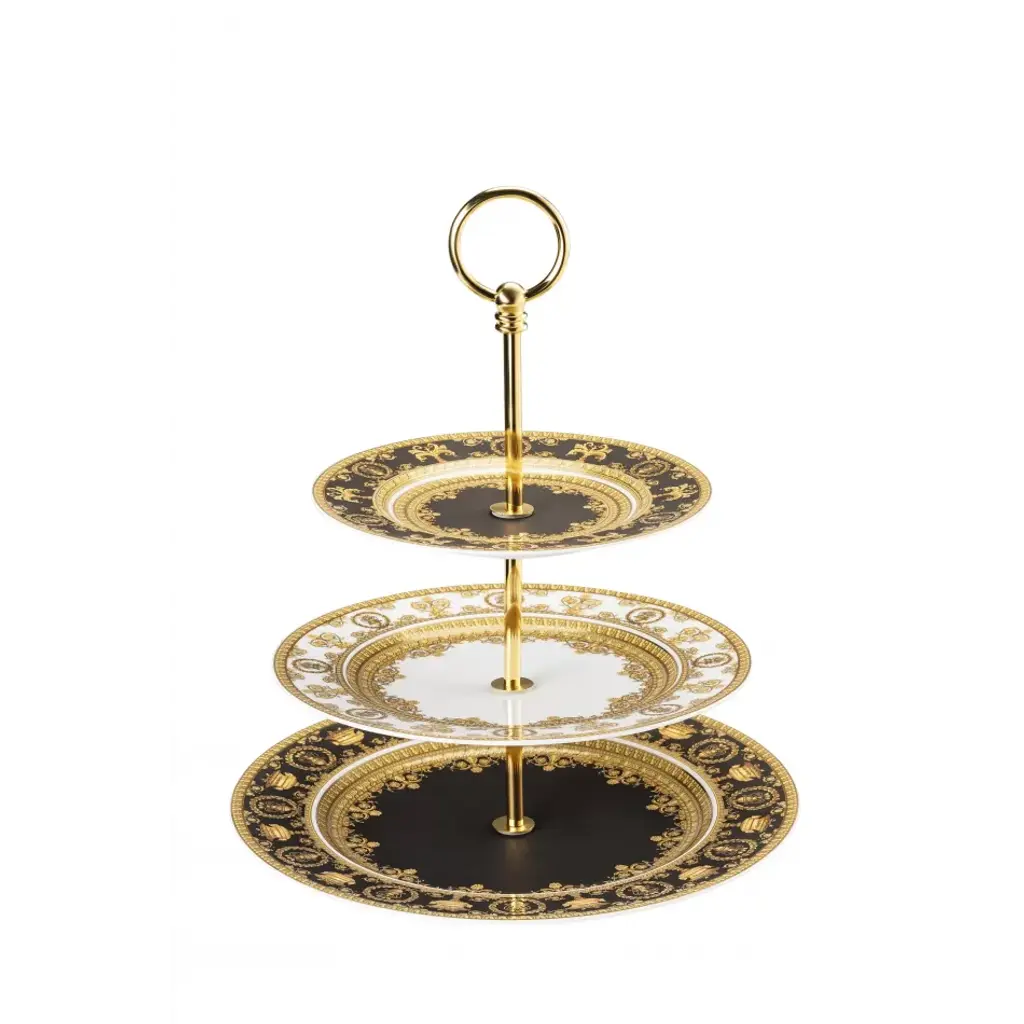 Serving piece palms center table with2 plates and base in enameled porcelain.With solid bronze structure and details invintage finish. Elegant piece.