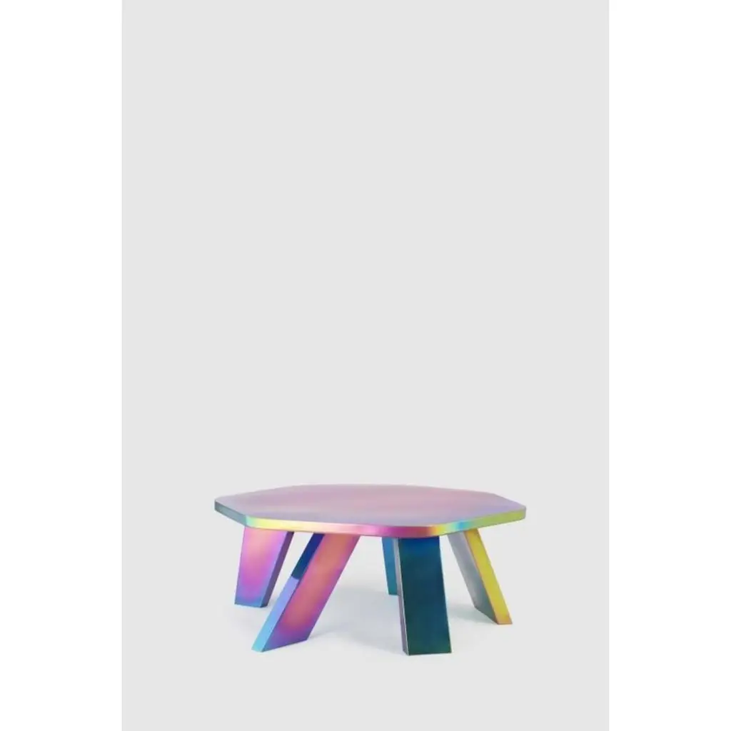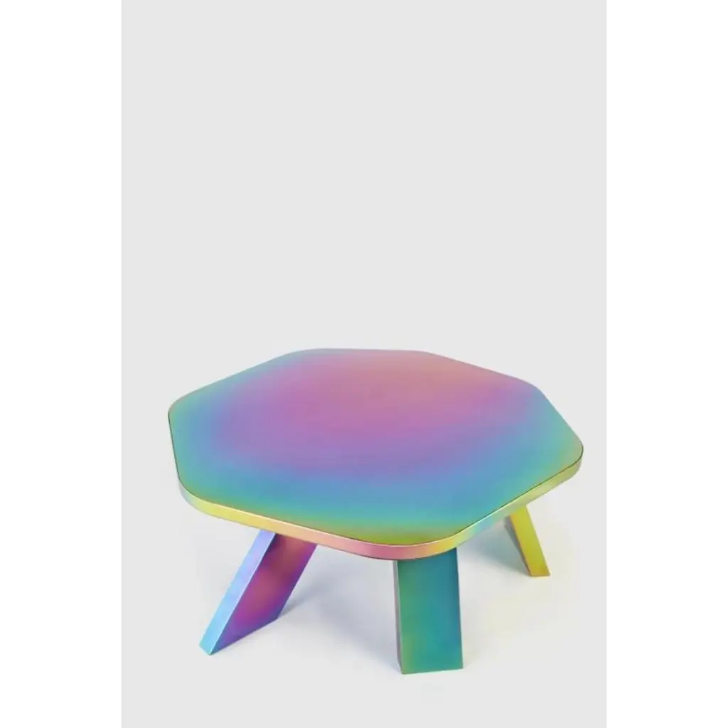 Rainbow center table by HatsuDimensions: D 114 x W 127 x H 40 cm Materials: Plated stainless steel Hatsu is a design studio based in Mumbai that creates modern lighting that are unique and immediately recognisable. We started with an idea to make good design available to people and design products that are eclectic, romantic and minimal. We want to be progressive with our designs in such a way that they influence the users lives. There are three responses to a piece of design - yes, no and WOW! Our aim is WOW.