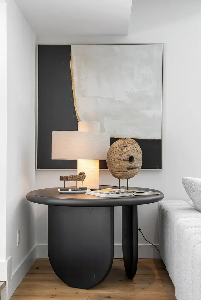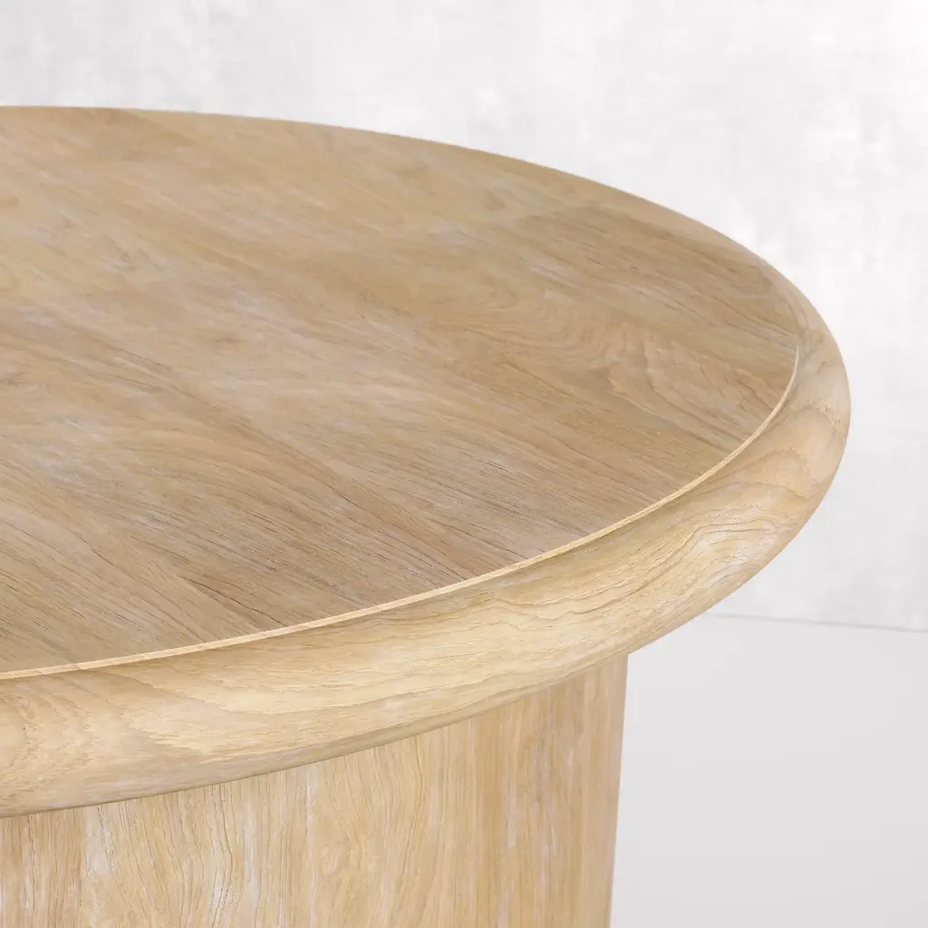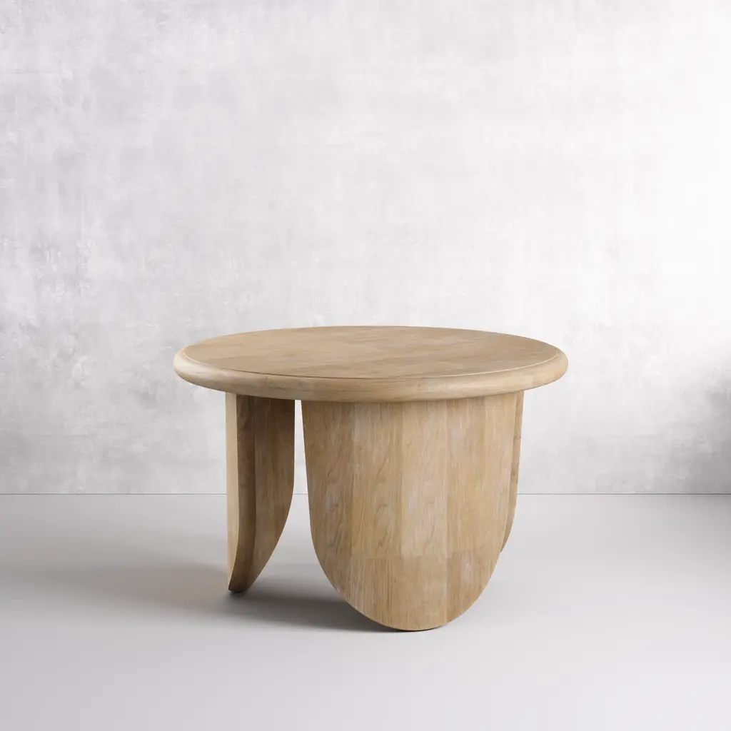 This entry table has playful rounded edges and a natural top. Our Turku table is Nordic in design and color. The neutral hue is balanced by the eclectic shape. Make an organic statement in your entry space with this asymmetrical piece of accent furniture. Dimensions: 47.0''W x 47.0''D x 30.0''H Tear Sheet