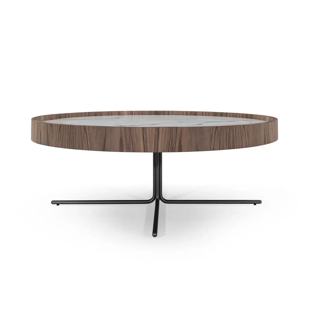 Walnut Veneer Coffee Table With 39-Inch White Marble Glass Top - Regia Line