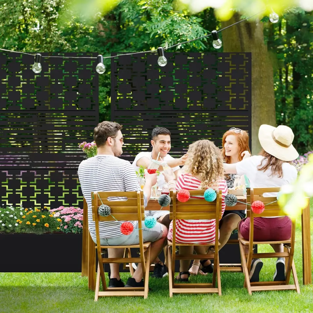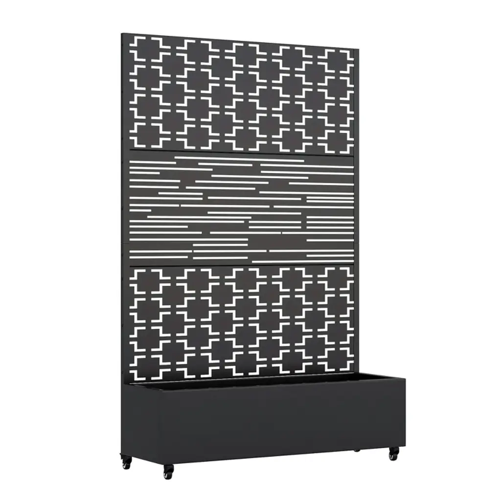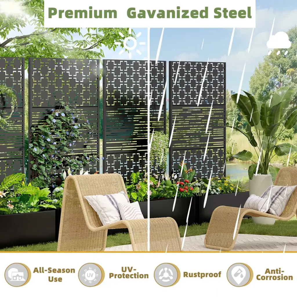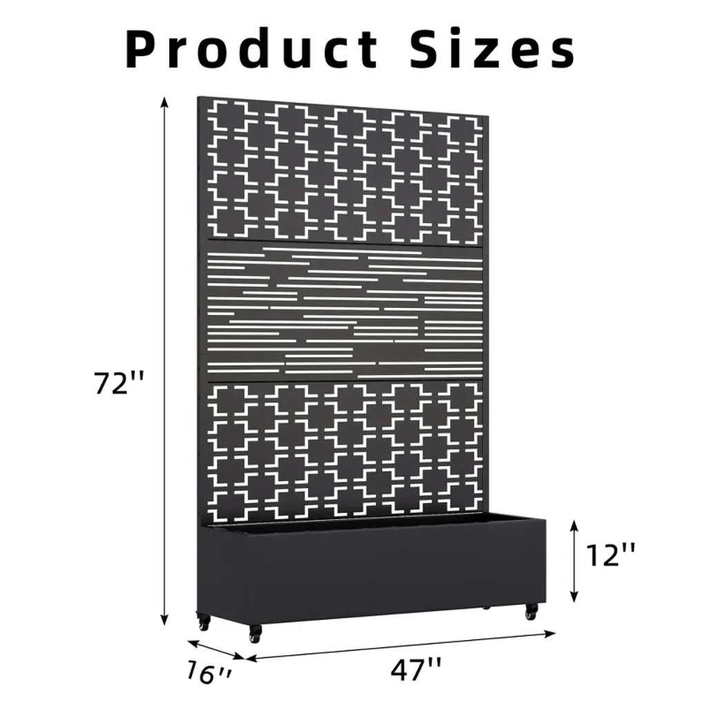 This stunning Black Wrought Iron Flower Shaped Outdoor Planting Box is a true garden centerpiece. Its elegant flower design, crafted from durable wrought iron, combines beauty with functionality. The integrated climbing frame supports climbing plants, vines, and flowers, allowing them to flourish gracefully. Standing at 71.37"x46.8"x15.6", this freestanding trellis planter serves as both a raised garden bed and a decorative element. Perfect for enhancing your outdoor space, it provides ample planting area while adding a touch of sophistication to your garden. Ideal for any green thumb looking to create a vibrant and eye-catching garden display.