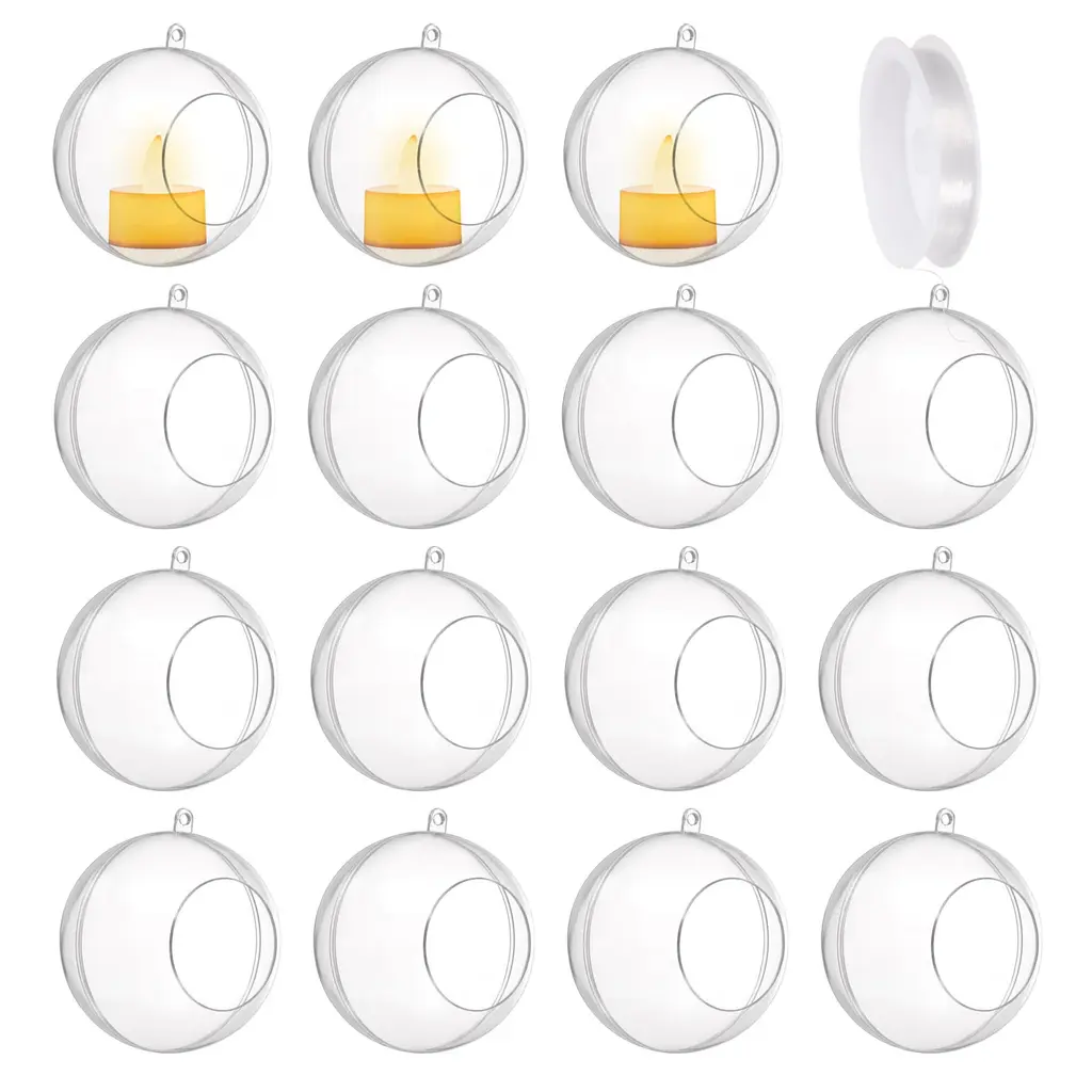 15 Pcs Hanging Tealight Holders Globes Acrylic Refillable Balls For Home - 4"