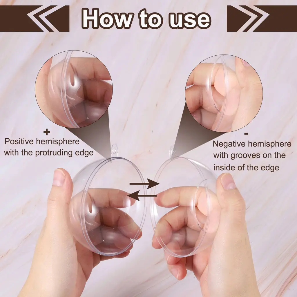 Description:Plastic Ornament Balls: The hanging globe is made from clear acrylic, which is durable and designed to withstand regular use, is not easy to break, easy to clean and maintain, ensuring that the ornaments look for a long timeOpening for Filling: The globes can be disassembled into two parts, and come with an opening design for filling, allowing you to customize the look with different fillings, the balls with decorative items are always attractive, whether hanging or laying flat on the tableEasy to Use: You just kind of snap them together and attach the ornament to your desired location by the line, then fill the globe with small trinkets, confetti, or other decorative items to create a unique and personalized lookWide Application: Great for Christmas decorations, DIY crafts, weddings, parties, and home decor, can be filled the decorative ornaments to add a festive touch to home decoration, events wedding decor centerpieces, or backdrop decorationsSpecification:Material: AcrylicColor: ClearDiameter: 8 cm/3.1"Opening Diameter: 4.5 cm/1.8"Package Included: 15 Pcs x Acrylic Hanging Globe