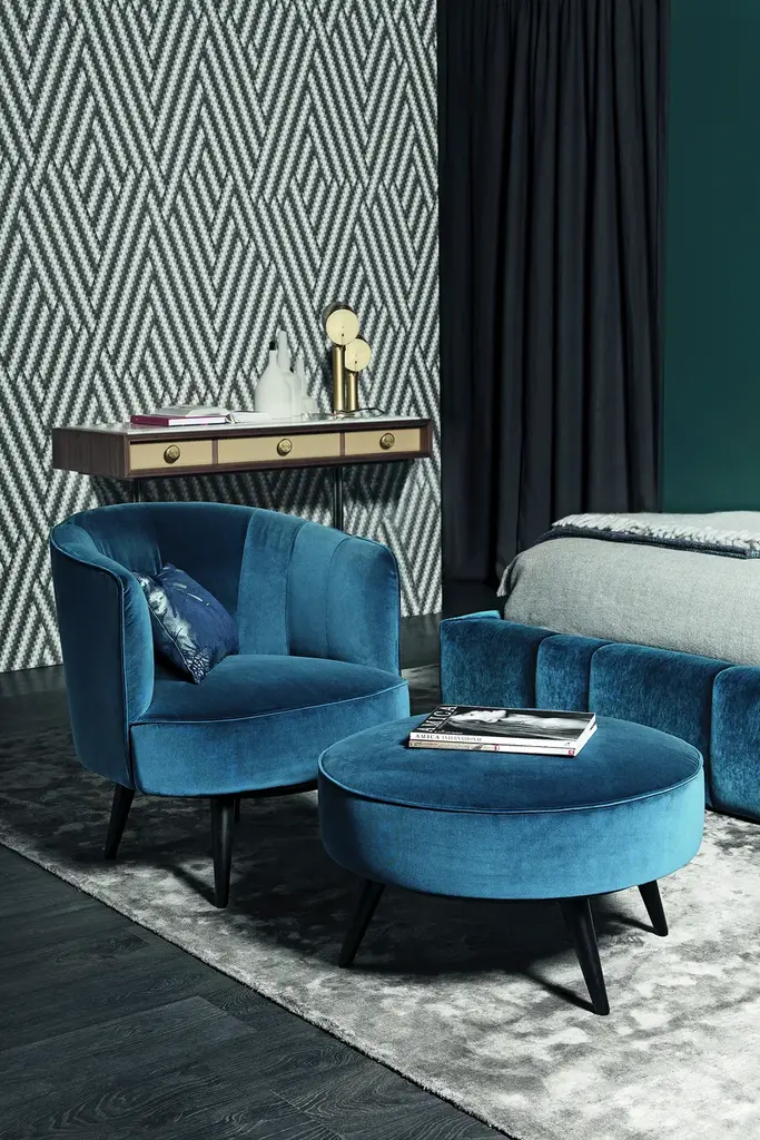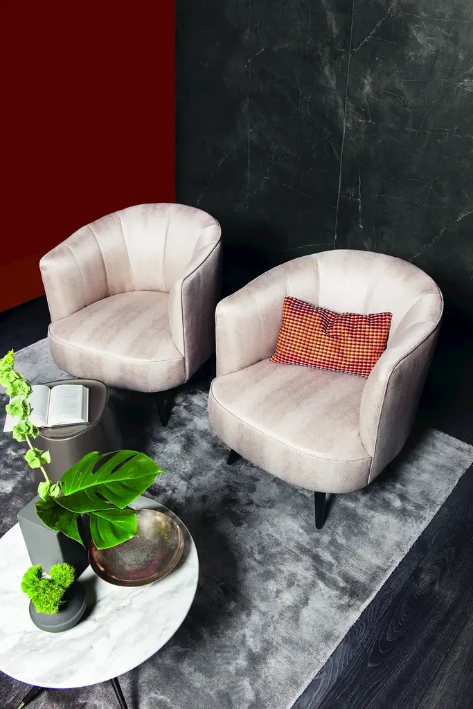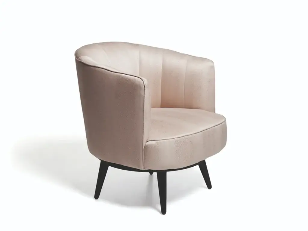1650 Cordi is the centerpiece of your living room, the very expression of hospitality.Comfortable and elegant, it has been designed to welcome its guests, thanks to its swivel base on a steel plate with a memory mechanism to return to its original position.The embracing backrest, decorated with inner stitching, not only grant comfort and support to the seat but it also brings richness and slenderness to the armrest’s profile.Technical featuresFrame: poplar multilayerSuspensions: high resistance unidirectional elastic bandsPadding: polyurethane foam covered with heated bonded fiber and velveteenMechanism: 180° swivel base under the seat with a memory mechanism to return to its original positionLegs: cone-shaped dull lacquered black woodCovers: non-removable fabric or leather coverBack finishes: quilted