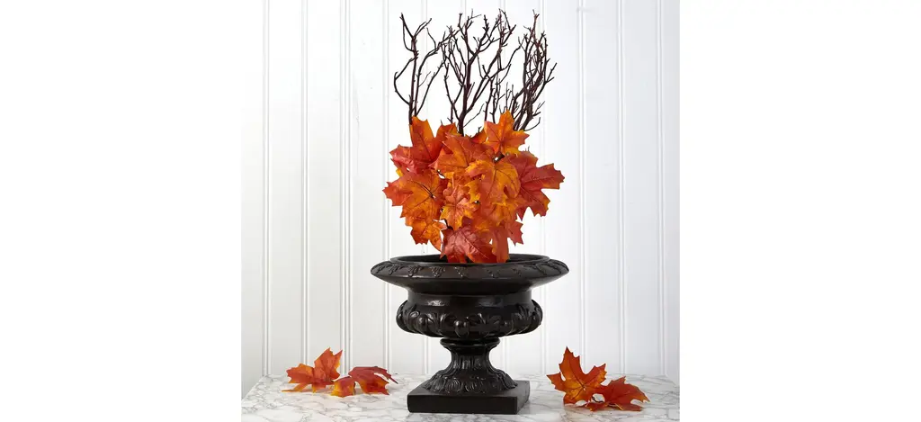 Have fun during fall with this Autumn Maple Leaf Artificial Flower Set. Put your creative hats on and go wild with these variegated , multicolored leaves bringing the fall foliage to your home. Standing 18", get ready for your next DIY session and have the coolest pin-worthy decorations on the block. Our favorite fall DIY d_cor ideas include wreaths, mason jars, pumpkin vase, centerpieces, and arrangements. Silk picks are manufactured using synthetic materials, such as polyester material or plastic, and are well designed and constructed to be life-like in appearance. This item will need to be re-shaped when removed from the secure box to allow it to reach its fullest size. Your artificial plant stem will look beautiful for years to come; simply wipe clean with a soft dry cloth when needed.