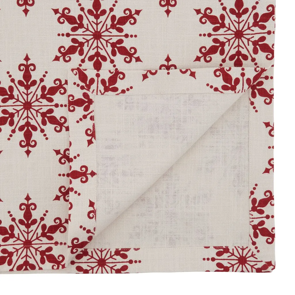 Add some sparkle to your Christmas decor this year. Tree skirt features a white burlap base with red snowflakes embellished in glitter this tree skirt is perfect for adding an extra bit of glitz to your holiday decor. Perfect for all kinds of holiday decorations including tree trimming mantle displays tabletops centerpieces and more! Product Features: White and red round Christmas tree skirt Features red glittered snowflakes Skirt has a one sided design with a white poly lining Contains 2 hook and loop fastener fasteners Recommended for the indoor use only Care instructions: spot clean only Dimensions: 20" diameter Material(s): polyester