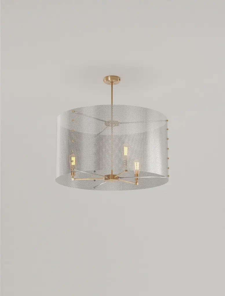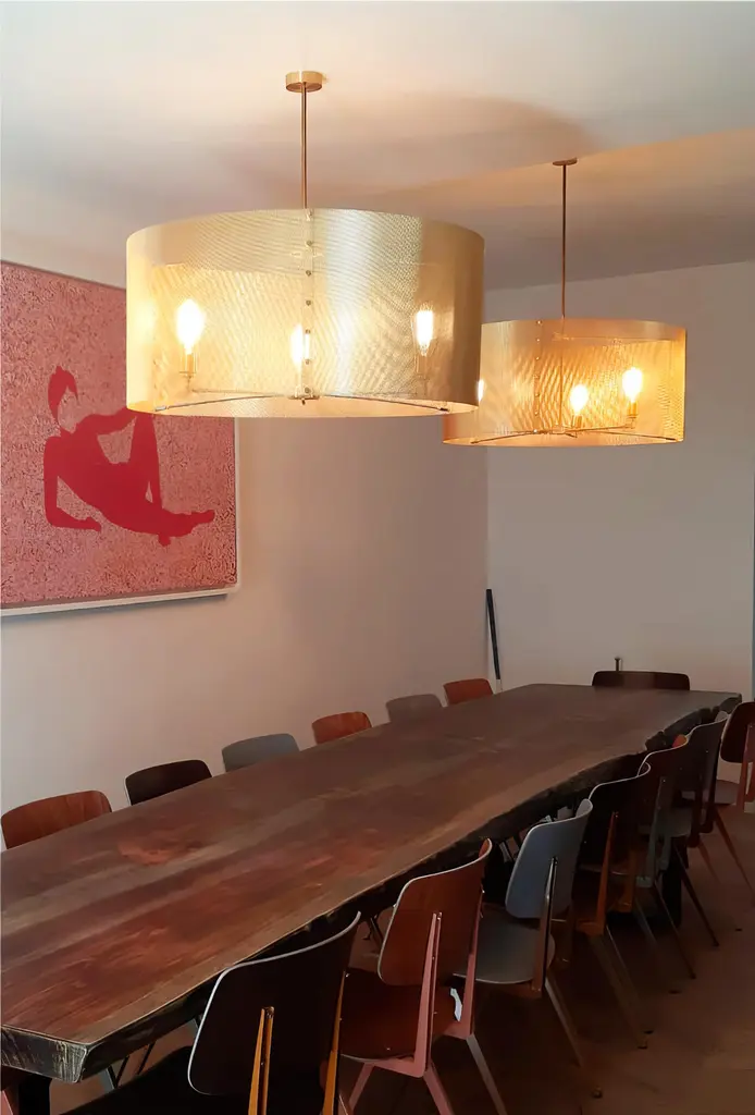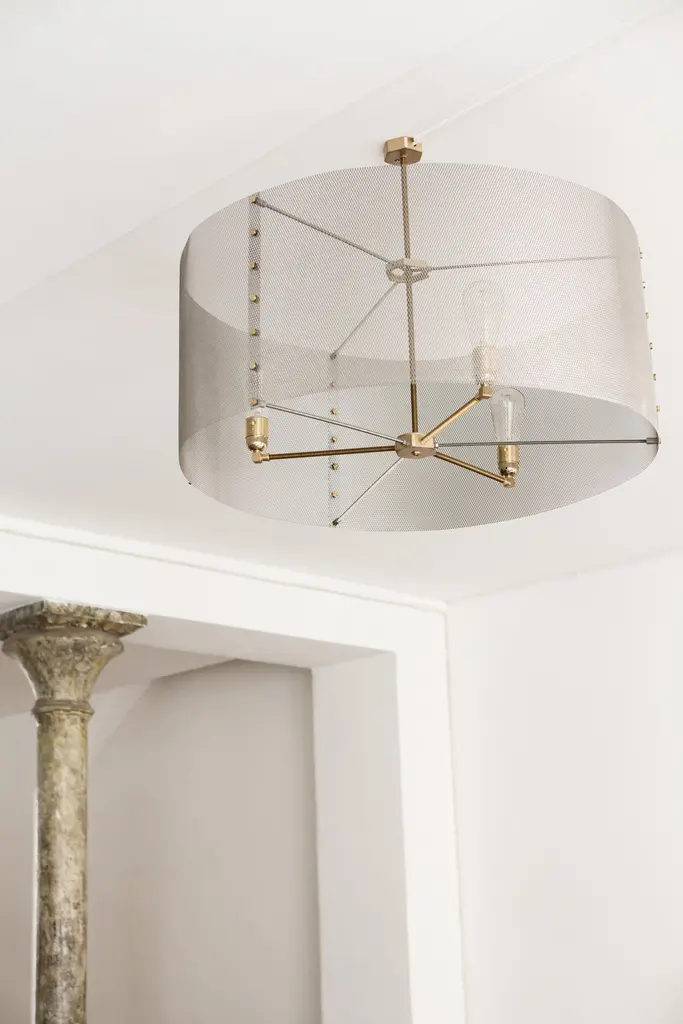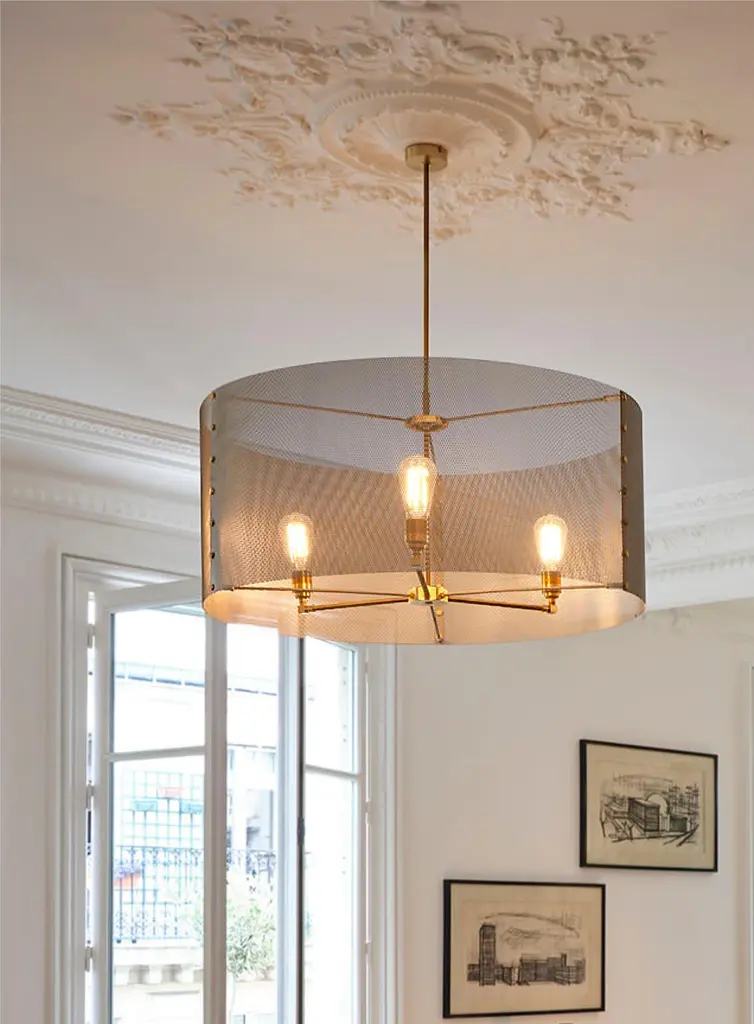 TRAPENARD - Ceiling lampThe Trapenard Pendant Lamp by French designer Marine Breynaert is crafted from brass and stainless steel. This meticulously handcrafted pendant lamp combines industrial materials with refined elegance to create a striking visual centerpiece.The warm glow of brass contrasts beautifully with the sleek, reflective surface of the stainless steel shade, making this pendant a perfect balance of form and function. Its minimalist, sculptural design makes it ideal for a variety of spaces, from contemporary living rooms to sophisticated dining rooms and grand entryways. The soft, ambient lighting it provides adds warmth and depth, enhancing any room's ambiance.With its clean lines and premium materials, the Trapenard Pendant Lamp is not just a light source, but a bold artistic statement that complements high-end interiors. Designed for those who value both modern design and artisanal craftsmanship, this pendant offers the perfect finishing touch for any luxury space.Chandelier - 2016Composition :Brass, Expanded stainless steel lampshadeDimensions :ø800 x 350 mmWeight :6 kgTechnical informations :Shipping : 6 - 12 weeksE27 / 40W max. Bulb includedDimmableStem length on requestUS wiring & UL certification on request Maintenance :Clean lightly with a microfiber cloth.Keep away from water and fire.Do not apply any solvents.