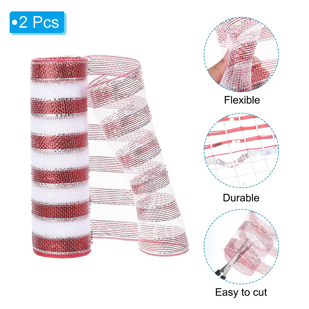 2Pcs Deco-Mesh, 10 Inch X 10 Yard Deco-Mesh Ribbon Roll Foil Metallic - Red White