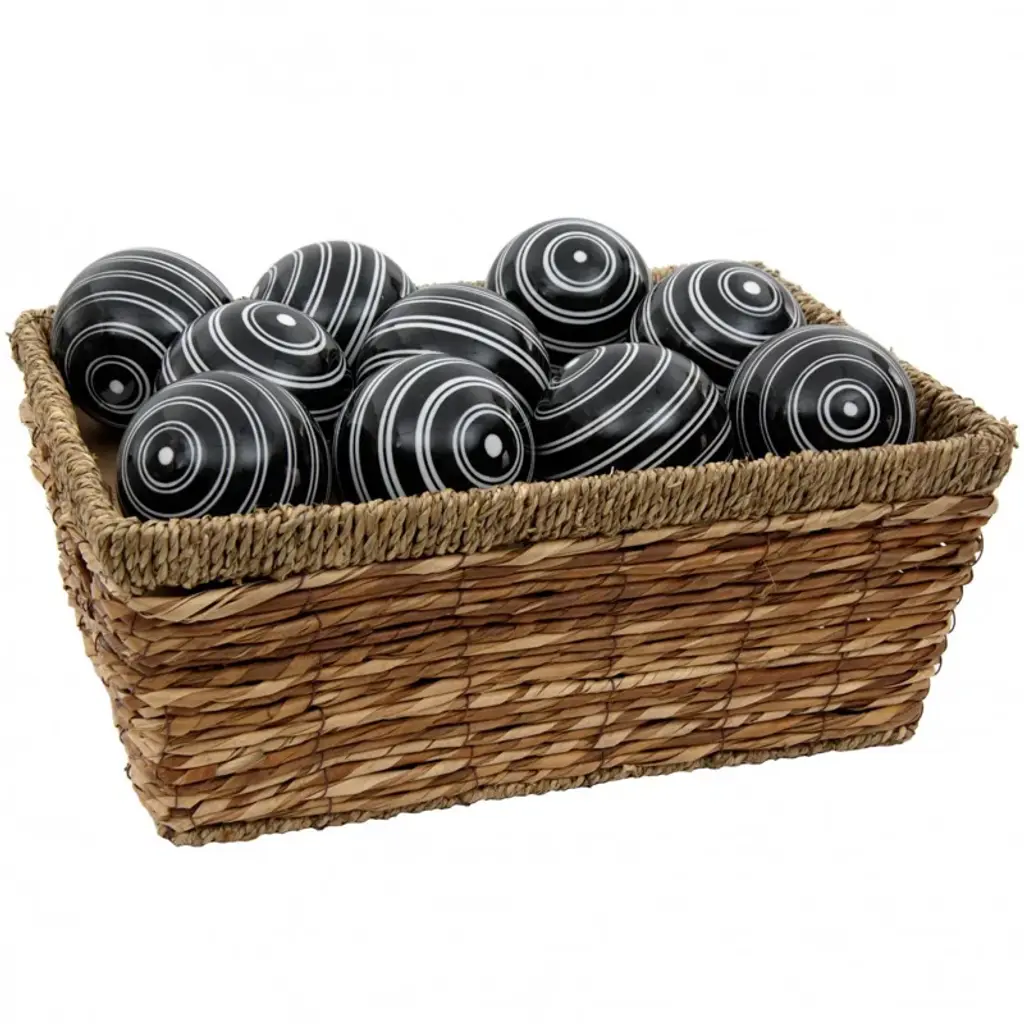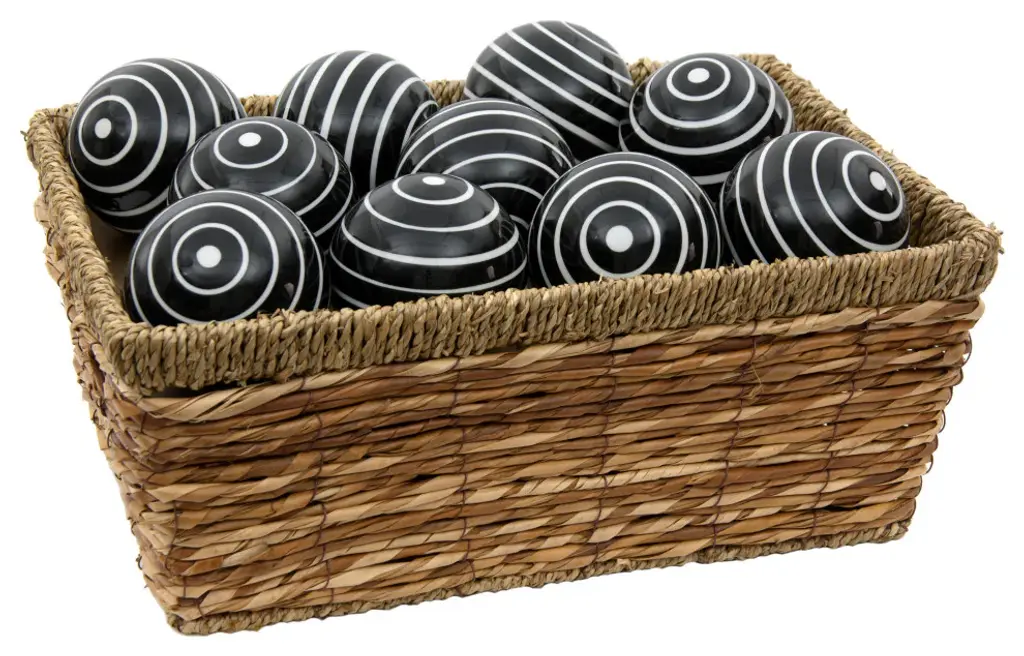 A stylish accent for display as a centerpiece or in a cabinet, this set of ten porcelain balls is a great way to add interest to your home decor. Featuring bold white stripes on black backgrounds, these spheres add a modern decorative touch to the room and make a great gift. Woven rattan display basket is not included.Sophisticated Stripes: Adorned with sleek black stripes on pristine white porcelain, this chic finish adds timeless charm and style to any space. Elevate your decor with an elegant touch that exudes sophistication and versatility.Set of 10 Decorative Porcelain Balls: Elevate your home decor with this stunning collection of 3" porcelain orbs. Use them together or spread the spheres around for an exquisite decorative accent in any room. An easy way to redecorate seasonally.Traditional Craftsmanship: This was made by hand in a small workshop by a traditional artisan employing centuries of knowledge and cultural heritage. Each piece is a unique work of art and may vary slightly in exact design and detail.Modern High-Temperature Firing: This exceptional ceramic boasts a vitreous porcelain finish achieved through firing in a state-of-the-art high-temperature kiln. Its strength and durability ensure a top-quality, reliable product for all your needs.Classic Design for Today''s World: By supporting traditional artisans in a changing world you help keep their crafts alive and available. These vanishing arts are precious and make a beautiful gift for a birthday, anniversary, housewarming, or holiday.