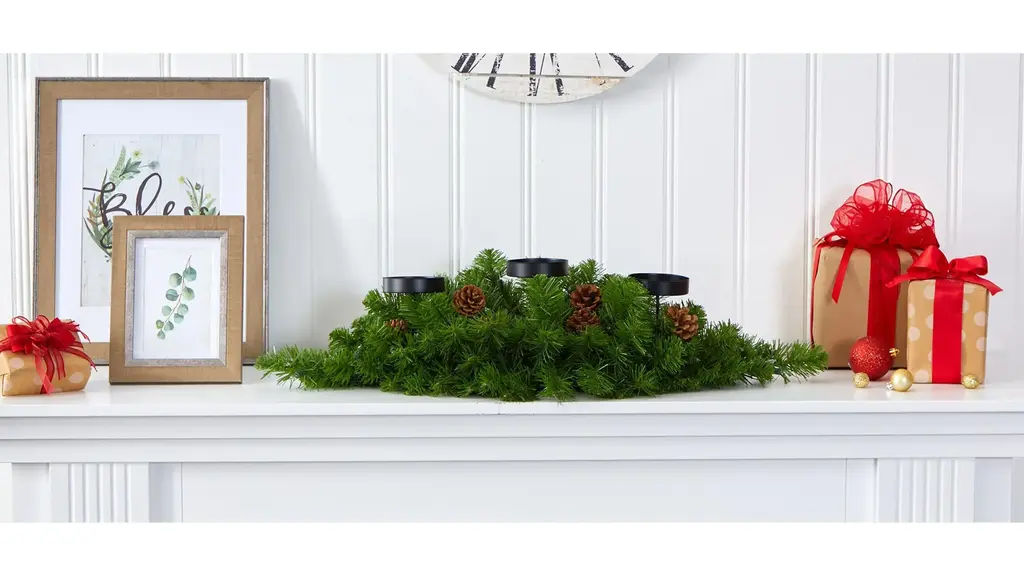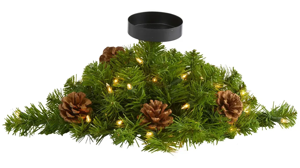 Set your home aglow this holiday season with the help of this artificial candelabrum; specifically designed as an elaborate candle holder, it's intricately designed from a rich overgrowth of realistic looking pine greenery, handsomely accented with miniature faux pinecones, all carefully surrounding a trio of candle holders. Better yet, this seasonal centerpiece comes already pre-strung with 35 clear lights, eliminating pre-tangled messes and holiday stress. Reaching 30" long, this winter-ready decorative accent would make an enchanting addition to a mantle or a holiday-inspired tablescape.