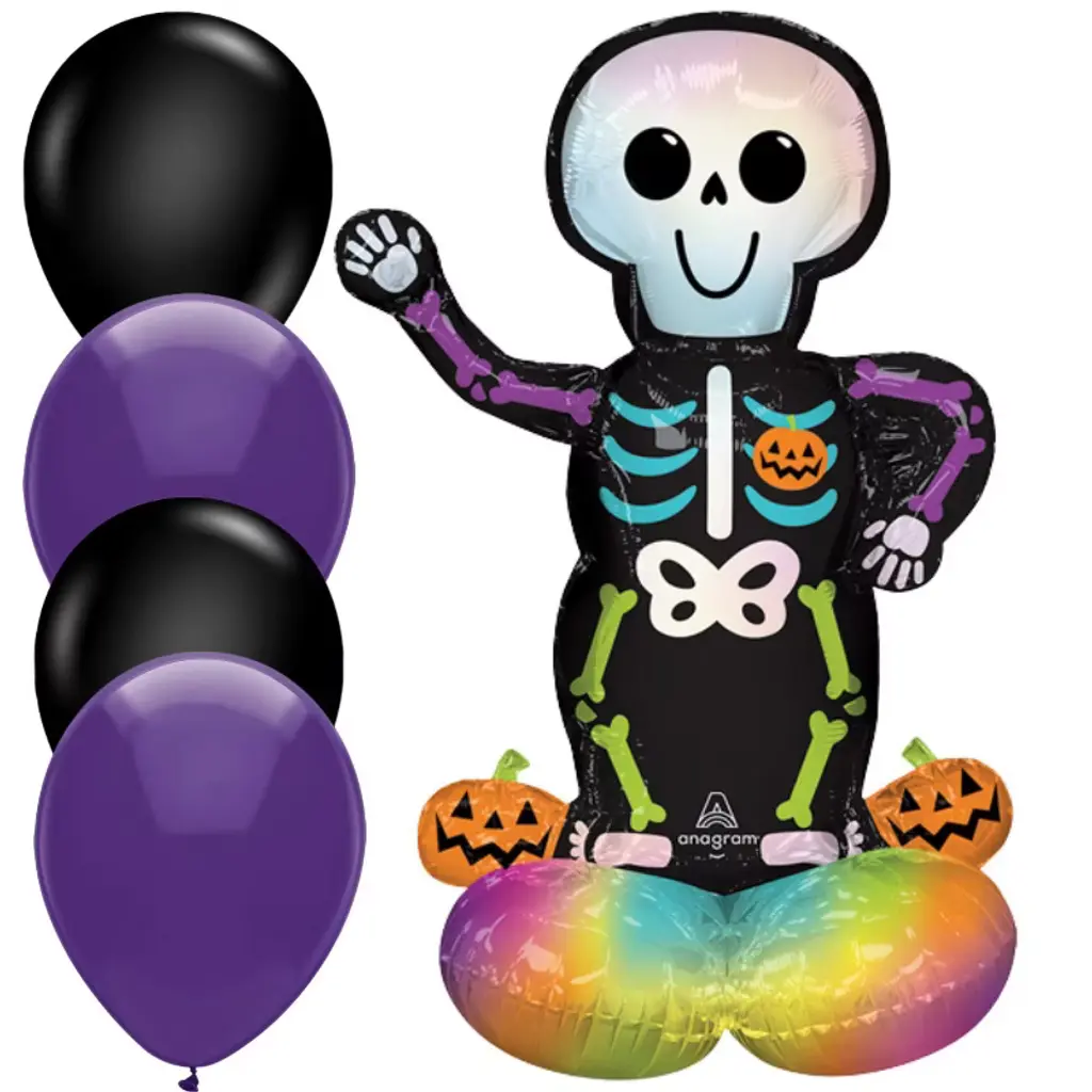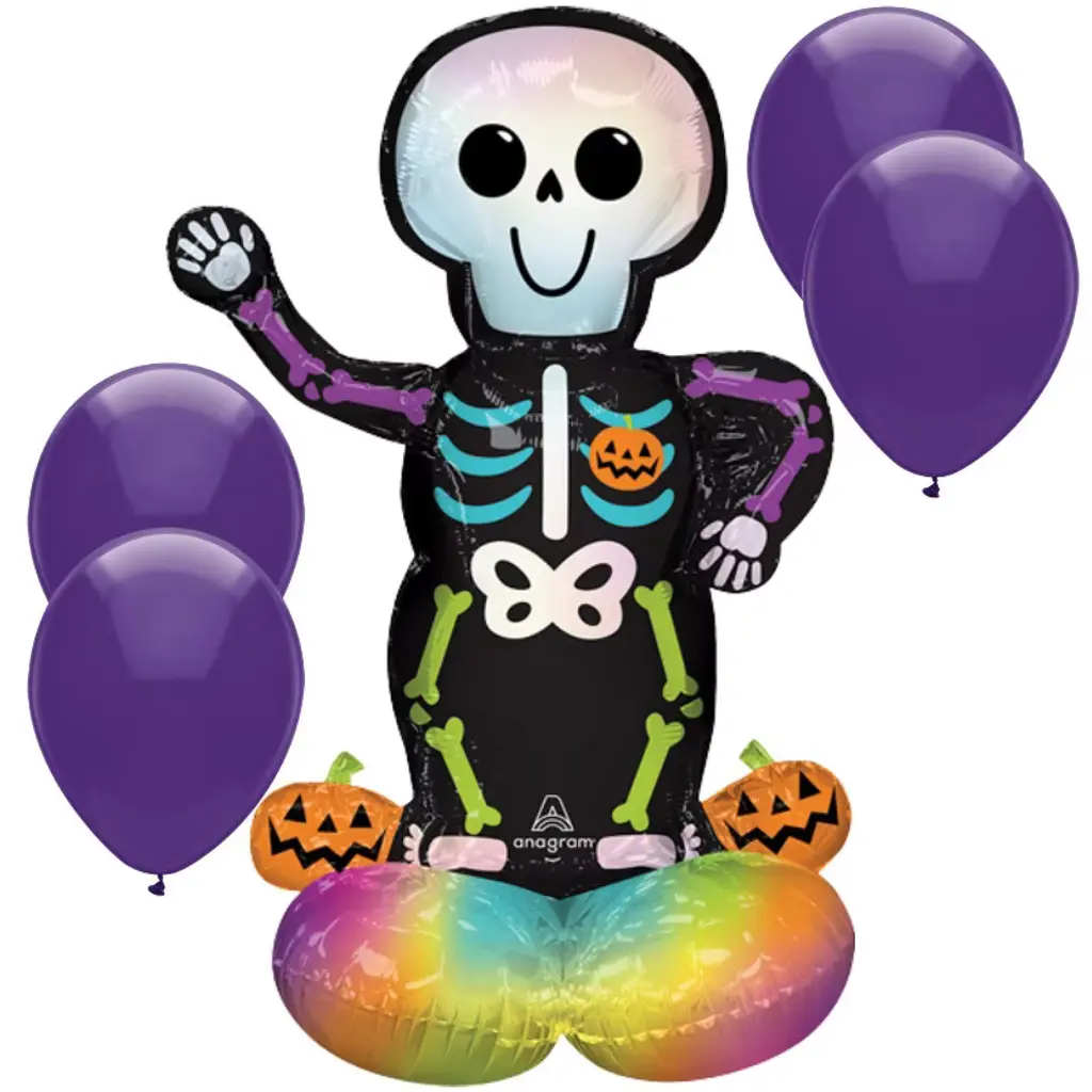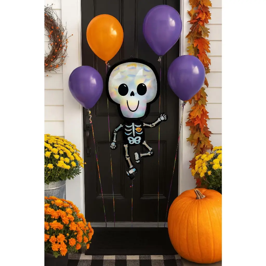 Elevate your Halloween celebration with the 37" Halloween Iridescent Skeleton Balloon set, complete with 4 matching 11" latex balloons. Designed with a shimmering skeleton graphic and a dazzling iridescent finish, this balloon brings both spooky vibes and stylish charm to any event. Its reflective surface shines under light, making it a standout centerpiece for haunted house parties, festive photo backdrops, or seasonal home decor. Whether you’re hosting a costume gathering, decorating for trick-or-treat night, or adding flair to a fall festival, this balloon set is a simple yet eye-catching way to transform your space into a glowing Halloween scene.