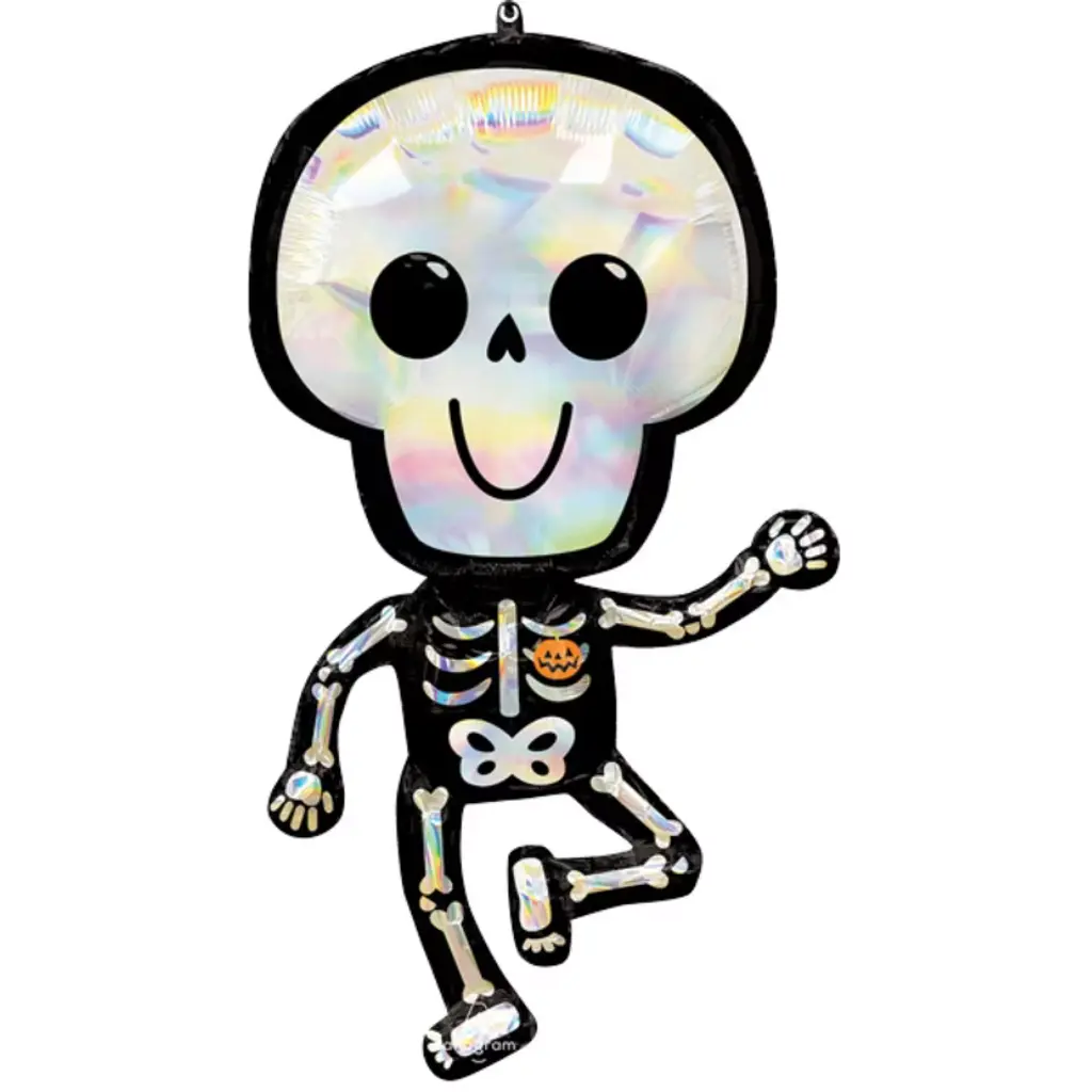 37" Halloween Iridescent Skeleton Balloon With 4 Latex Balloons – Spooky Party Decoration Set