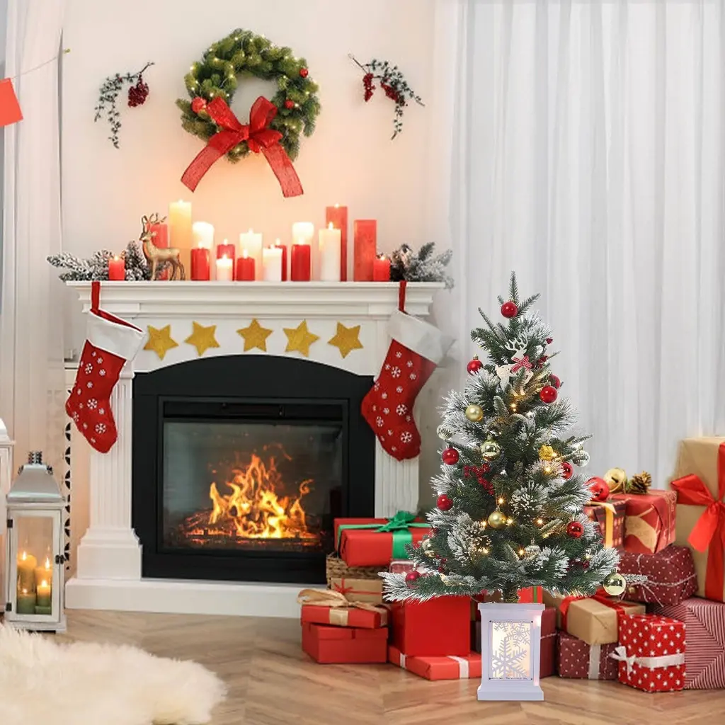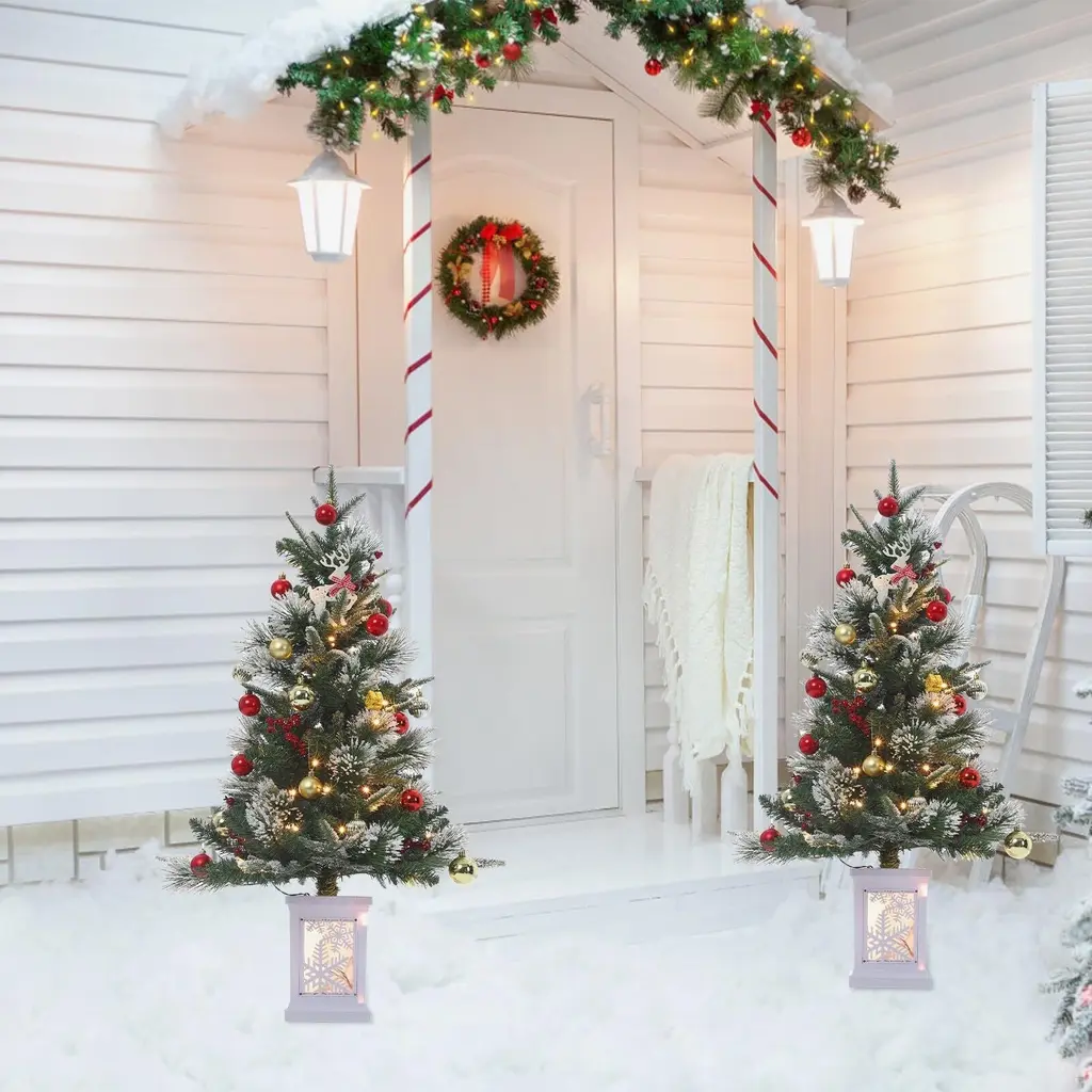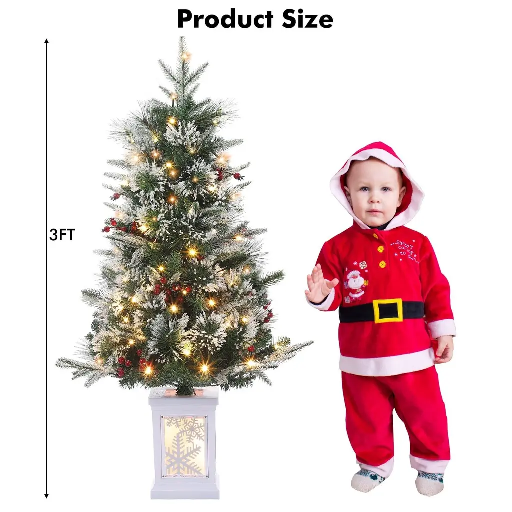 ARTIFICIAL CHRISTMAS TREE: These are 2 pack 3ft pre-lit snow flocked artificial Christmas tree with 78 warm white LED lights and lighting potted base. A charming addition to add Christmas spirit to any room, and the warm white lights will give your house a cozy and festive glow. BUILT-IN LIGHTING & 6 HOUR TIMER: Ideal holiday decoration with lighting base and 78 battery operated warm white LED lights with integrated 6 hours On/18 hours Off timer. The lights remain lit even if a bulb burns out. INDOOR OR COVERED OUTDOOR USE: Simple setup to display in the living room, bedroom, porch, or office. Use this attractive Christmas tree as a festive fall, winter, and Christmas decoration in your home or covered outdoor locations. Our artificial Christmas tree stands 3 feet tall, perfect as a centerpiece, on a table top, mantle or desk. EASY TO ASSEMBLE: The lights are strung on the tree before packaging, offering an easier, more convenient set up. Simply take it out from the box, fluff the branches, install 3AA batteries (not included) for the battery box, and enjoy the lifelike Christmas tree. DURABLE BRANCHES & STURDY BASE: Each branch is crafted from durable PVC to mimic a real tree, and the potted base is made of cement to provide greater support and balance for the Christmas tree, effectively preventing it from tilting. This 3ft Christmas tree is built to bring holiday cheer for years to come.