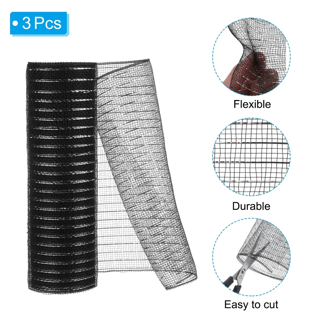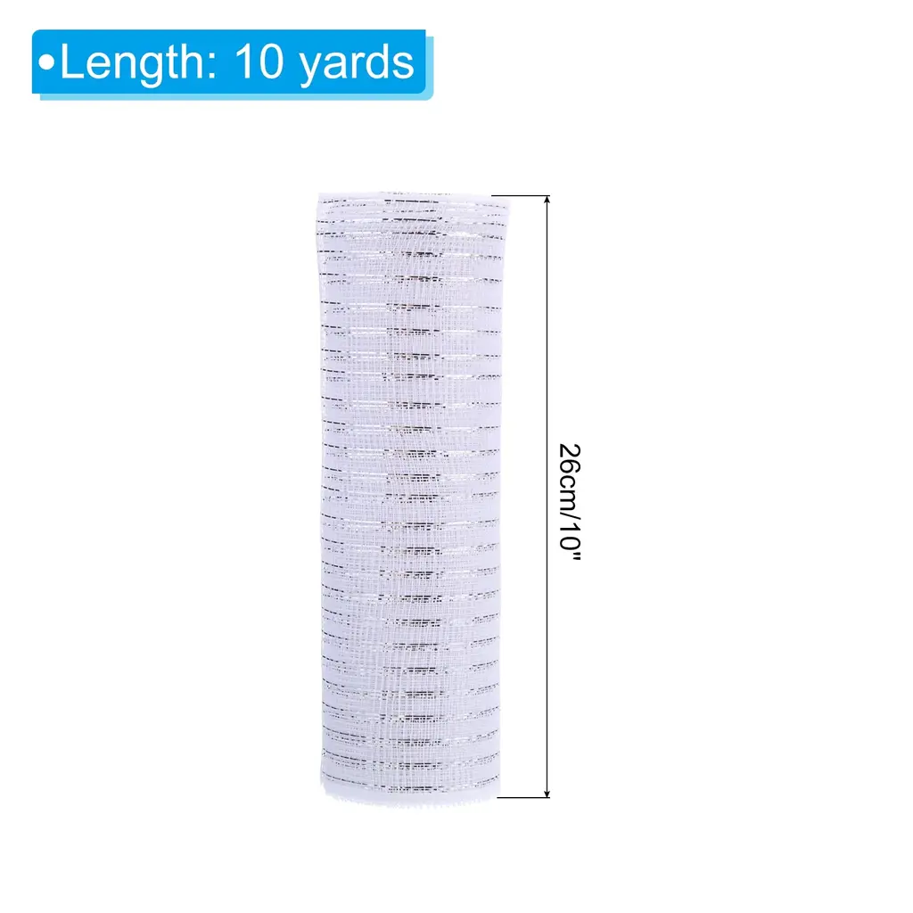 The Christmas Tree decorative mesh ribbon can be twisted, stretched, bent and shaped into any desired shape, paired with cotton snow-balls and wide foil, widely used for Christmas tree decorations and making garlands. Use to decorate vases, columns, arches, railings, centerpieces and more. This craft net is good for making wreaths and bows, table decorations, Christmas trees, decorating the house and moreSpecificationMesh Ribbon Length: 10 yardsWidth: 26 cm/ 10 inchPackage List: 3 pcs Decorative MeshAdvantageThis decorative mesh ribbon is flexible, lightweight, waterproof, durable and reusable. Our mesh belts hold their shape very well. Our netting has clean edges so you won't have any loose threads. Beautiful solid color paired with foil.Instruction Easy to cut, suitable for holiday decoration, New Year decoration, Christmas decoration.NOTE: Do not place decorative mesh in a humid, unventilated-place; Avoid direct contact of cosmetics and other items with silk fabrics. The store has other styles to choose from.