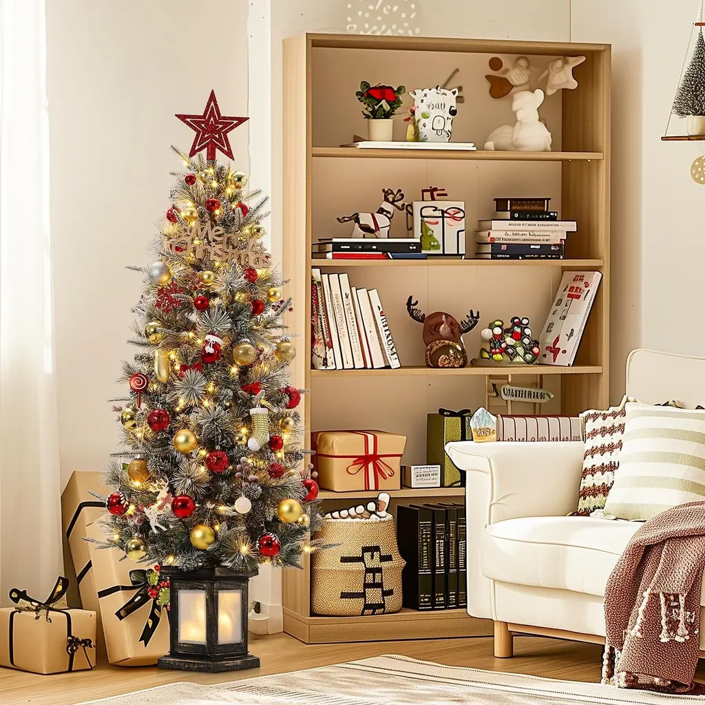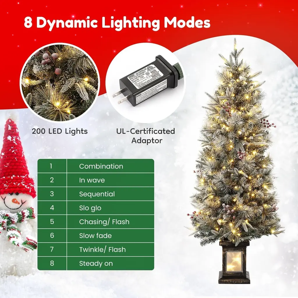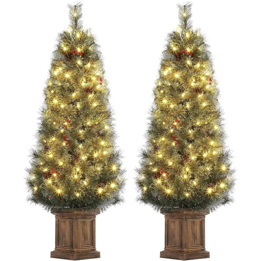 🎄【Realistic Appeal】Our pre-lit artificial tree branches look incredibly realistic and lifelike. With elegant non-toxic PVC foliage, it creates a snowy atmosphere even without a white Christmas in the forecast. 🎁【Multiple Lighting Modes】This 4.5FT Christmas tree comes with features 8 lighting modes: Combination/In wave/Sequential/Slo glo/Chasing/Slow fade/Twinkle/Steady on. With 2700K LED bulbs, it stays lit even if one bulb burns out, designed for durability. Our tested and hypo-allergenic needles are fire-resistant. ☃️【Pre-lit Christmas Tree】: Standing at 4.5 feet tall, this pre-lit Christmas tree is adorned with 200 sparkling bulbs and features a convenient two-section design. With the lights already installed, simply connect the switch and shape the tree to your liking for a beautifully illuminated holiday centerpiece with minimal effort. 🌟【Sturdy Pot Stand】For your convenience, the pot base of the 4.5-foot artificial tree is made of cement, with the tree sitting in an attractive clear lightbox that doesn't expose the cement, making it easy to place anywhere in your home. 🍎【Durable Materials】This tree is made from sturdy, high-quality, low-allergenic, fire-resistant needle tips, with hundreds of individually molded "Feel Real" tree branches that create a full-bodied appearance and a lifelike look and feel. This tree is built to bring holiday joy for years to come. 🍾【Premium After-Sales】Designed for both indoor and outdoor use, easy assembly - simply take the tree out of the box, adjust the branches, and insert the batteries for instant decoration. Each product measures: 23"D x 23"W x 54"H, weight: 6.4 lbs. If you have any questions, feel free to contact us and we'll provide you with premium after-sales service. :)