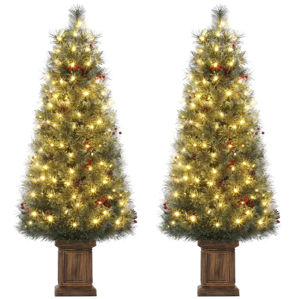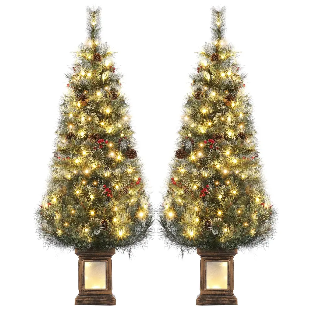 【Realistic Appeal】Our pre-lit artificial tree branches look incredibly realistic and lifelike. With elegant non-toxic PVC foliage, it creates a snowy atmosphere even without a white Christmas in the forecast. 【Multiple Lighting Modes】With 2700K LED bulbs, it stays lit even if one bulb burns out, designed for durability. Our tested and hypo-allergenic needles are fire-resistant. 【Pre-lit Christmas Tree】: Standing at 4.5 feet tall, this pre-lit Christmas tree is adorned with 200 sparkling bulbs and features a convenient two-section design. With the lights already installed, simply connect the switch and shape the tree to your liking for a beautifully illuminated holiday centerpiece with minimal effort. 【Sturdy Pot Stand】For your convenience, the pot base of the 4.5-foot artificial tree is made of cement, with the tree sitting in an attractive clear lightbox that doesn't expose the cement, making it easy to place anywhere in your home. 【Durable Materials】This tree is made from sturdy, high-quality, low-allergenic, fire-resistant needle tips, with hundreds of individually molded "Feel Real" tree branches that create a full-bodied appearance and a lifelike look and feel.