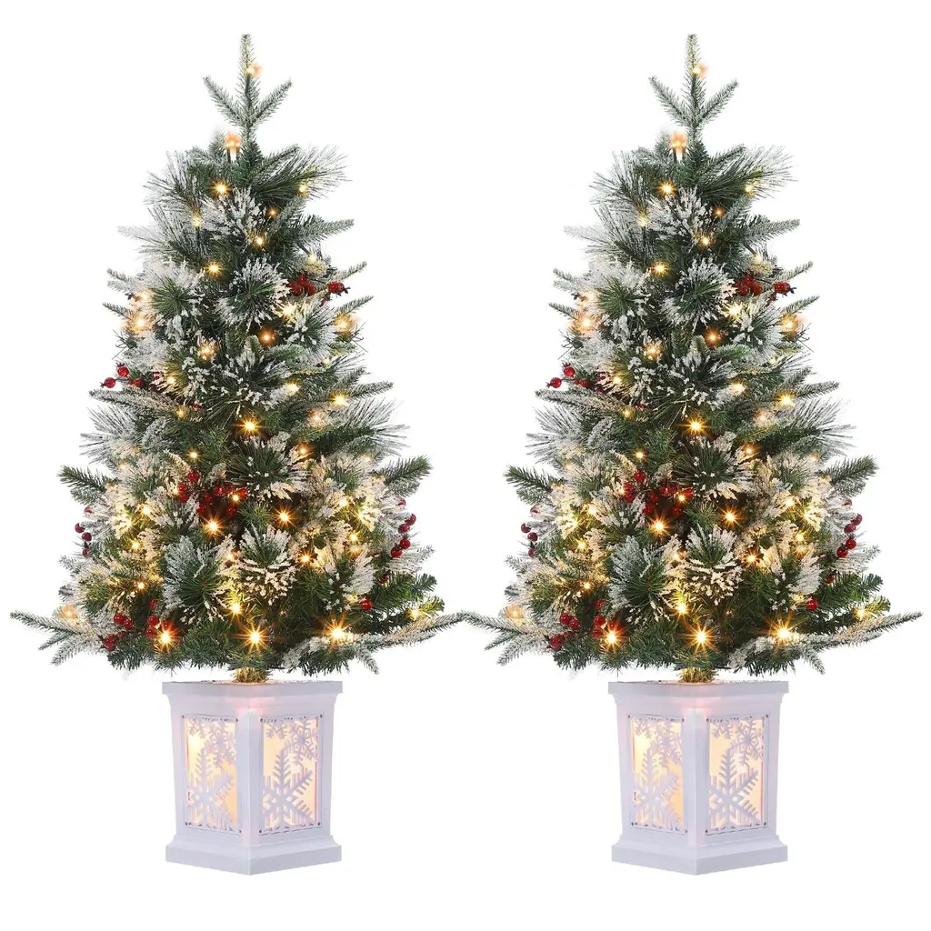 4.5ft Snow Flocked Artificial Christmas Tree Snowflake Vintage Base,2pc - Green