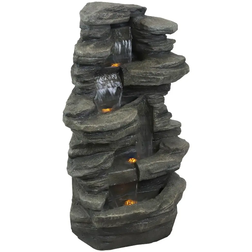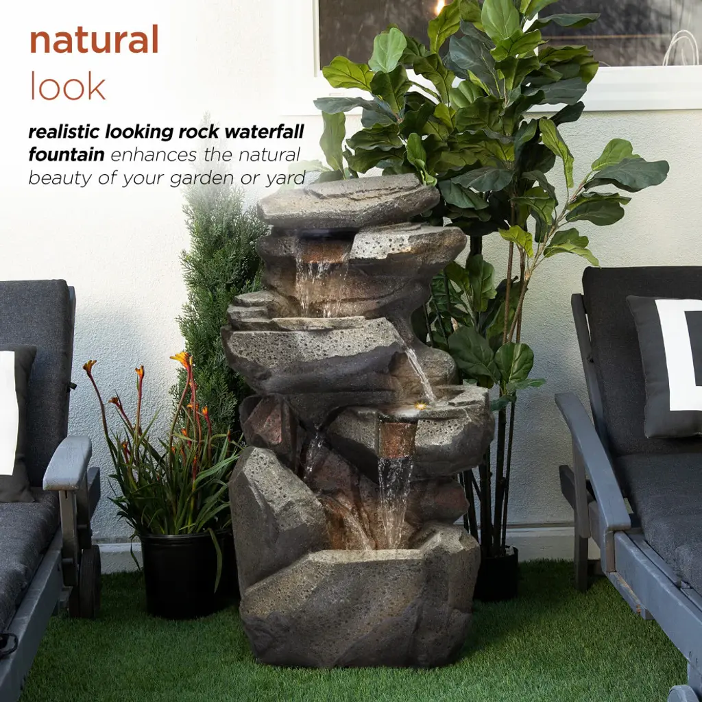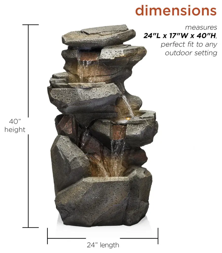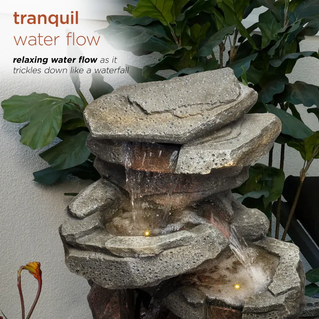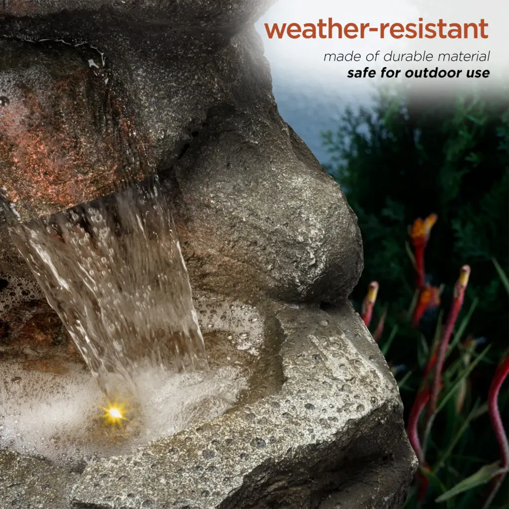 40" Tall Outdoor 3-Tier Rock Cascading Waterfall Fountain With Led Lights