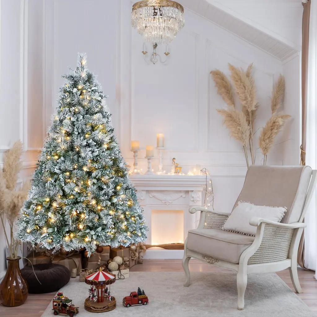 Experience the charm of the holidays with our full pine needle decorated Christmas tree. This tree features a lifelike design and comes with a convenient hinged 2-part frame for easy assembly. It is adorned with warm white steady LED lights that create a cozy and inviting atmosphere for your festive celebrations. The lush pine needle branches and decorative details ensure a beautiful centerpiece for your indoor or outdoor holiday décor, allowing you to focus on creating joyful memories with family and friends.FeaturesSpecifications