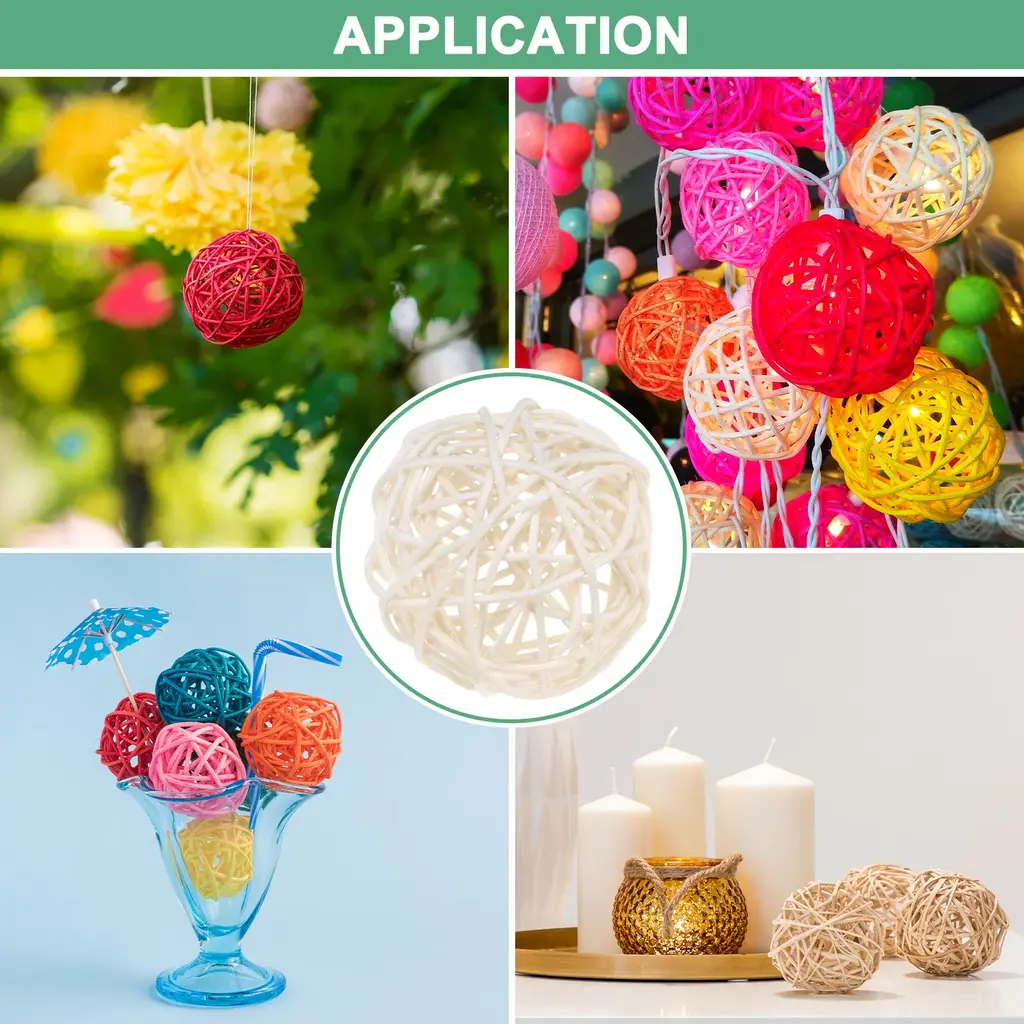 PRODUCT APPLICATIONSOur fall decorative balls have various applications. They can be used for home, office, store, garden, centerpieces, hotels, parties, festivals, celebrations, Christmas, Halloween, Thanksgiving, and other occasions. It was also suitable for parties, birthday celebrations, or wedding dinners to set the atmosphere.PRODUCT DETAILS & INCLUDE√ Material: Woven Rattan Wood√ Color: White√ Diameter: 60mm/2.4 Inch√ Package Includes: 6-Pack x Rattan Balls DecorativePRODUCT ADVANTAGES1. Christmas fall rattan balls are made of woven rattan wood material, which is well polished and splinter-free, it will not fade, deform, loosen, or break, and they will be very durable. You don't need to worry about scratching your fingers.2. These rattan balls are lightweight and colorful, ensuring long-lasting beauty. These different sizes of rattan balls can better decorate your home life.ATTENTIONBecause of the light, the color and size will be slightly wrong.