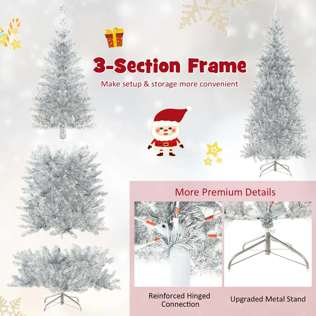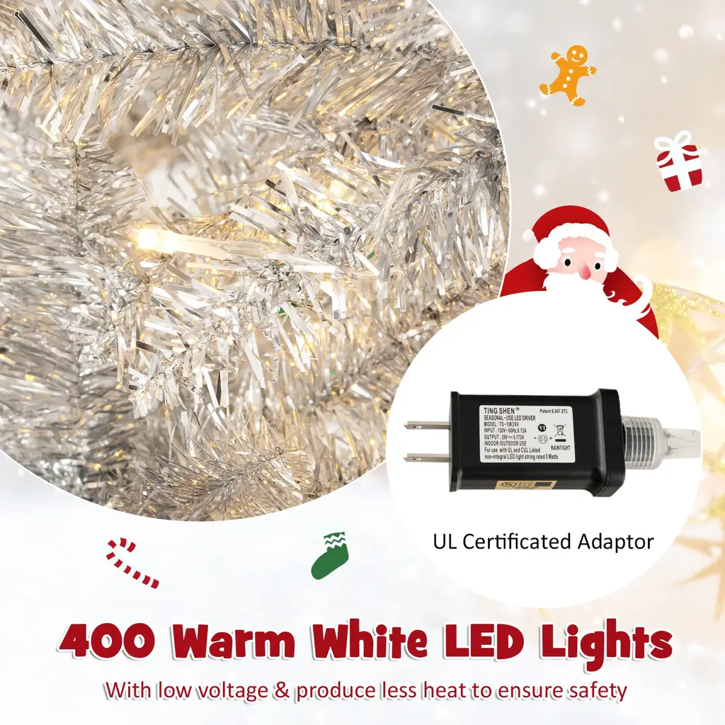 6/7ft Pre-Lit Artificial Silver Tinsel Xmas Tree W/ 300/400 Led Lights - 6 Foot