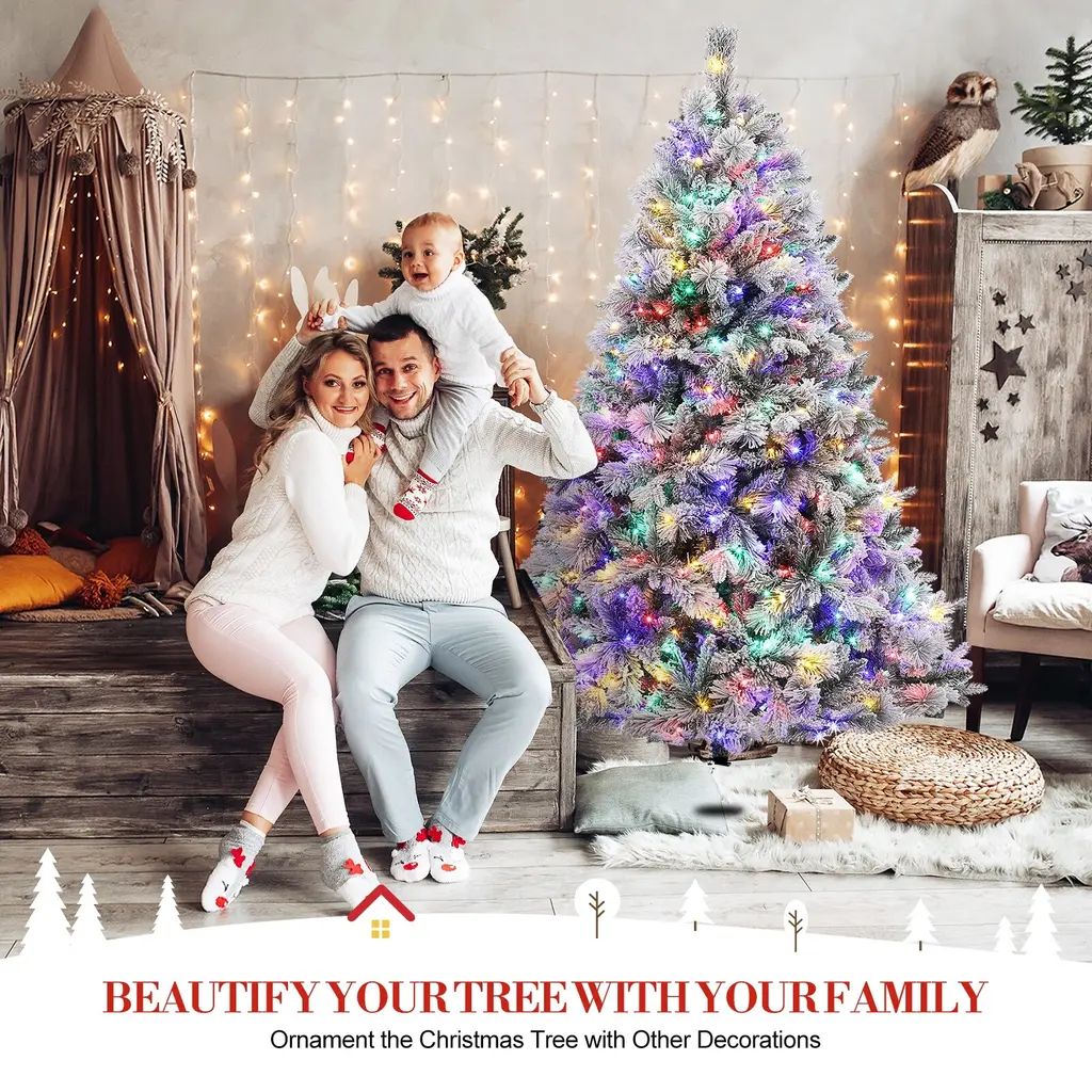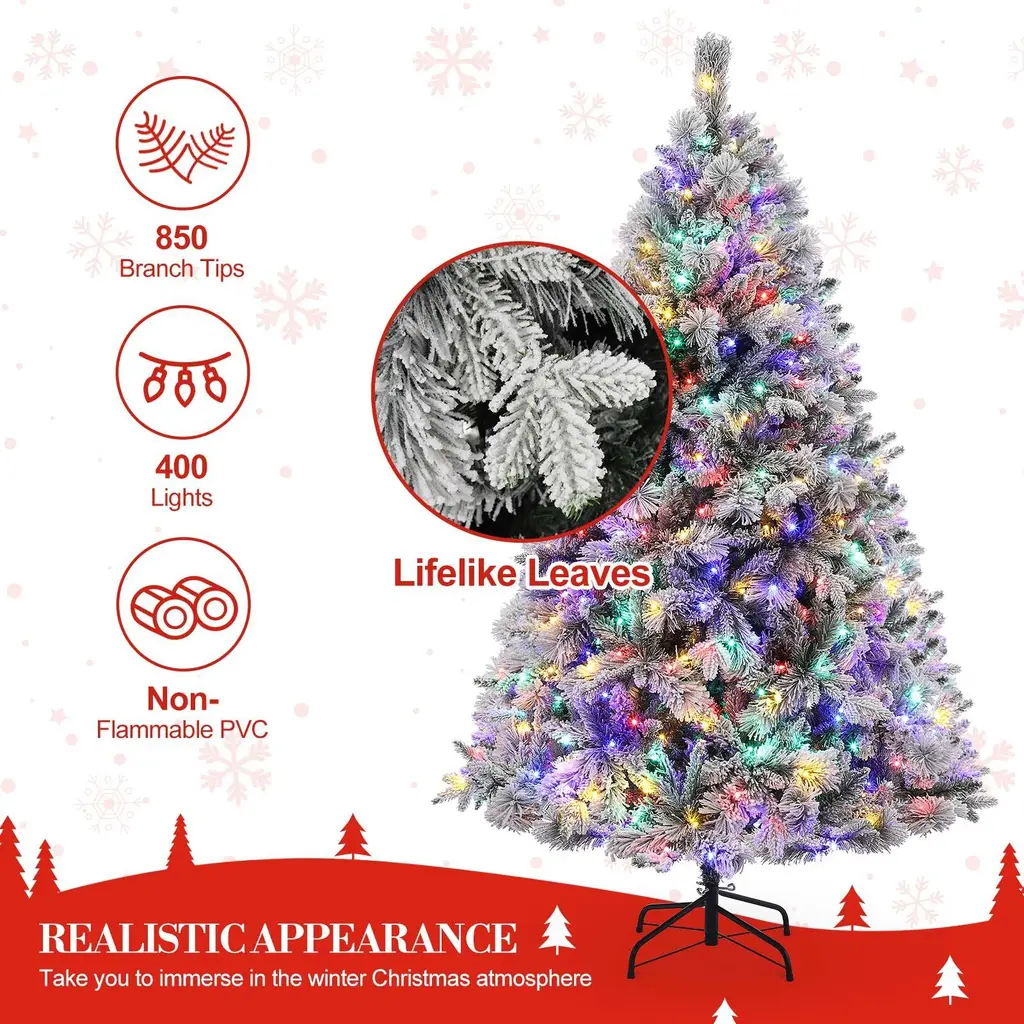 Create a magical holiday atmosphere with our 6-foot pre-lit Christmas tree, adorned with 400 vibrant multicolor LED lights and featuring a beautiful snow-flocked design. This easy-to-assemble tree is built for durability and stability, making it the perfect centerpiece for all your holiday celebrations. Key Features: