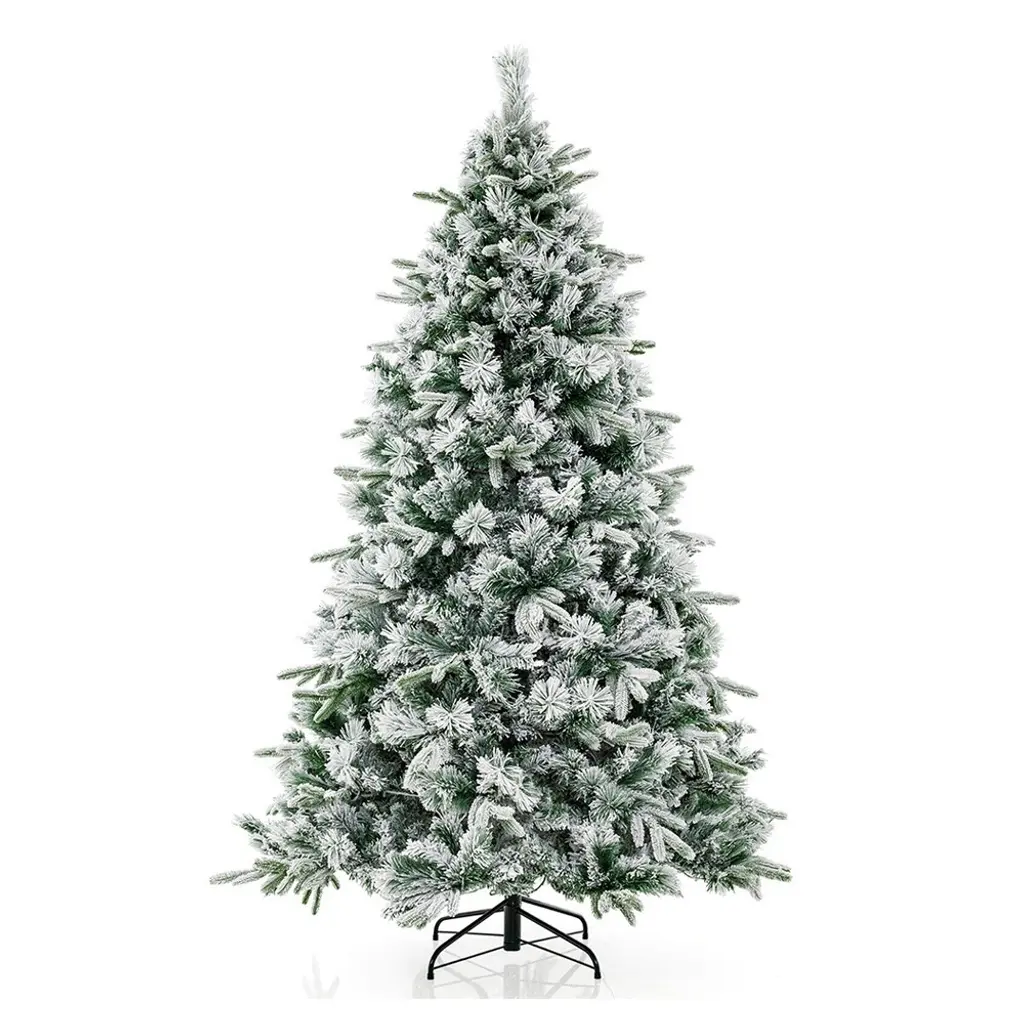 ▌ PRODUCT DETAILS: Description: Get ready to be surprised by the 6 ft Xmas tree! Unlike others, ours features 752 flocked branch tips for the wintry season, which contains mixed PE & PVC branch tips for perfect simulation, also including pine needles. More, made of high-quality materials, the durable Christmas tree resists fire & unwanted deformations. Its PE material ensures that its colors remain vivid & unfaded, while also being allergy-free. Illuminate your space with up to 250 warm white LED lights, casting a magical glow that fills the room with joy & cheer. Setting up the Xmas tree is convenient, thanks to hinged connections that allow the branch tips to automatically expand. The sturdy foldable metal stand promotes stability & saves you time during installation. From office parties to school celebrations & carnival, this pre-lit Xmas tree is the perfect centerpiece. When the celebrations come to an end, simply disassemble the tree into 3 sections for compact storage. As a thoughtful addition, we provide a pair of gloves to protect your hands during the setup process. Features: 752 branch tips are flocked to mimic a snowy real tree Premium pine needles& PE are fireproof, non-allergic & not easy to deform Superior PE leaves are non-fading to maintain a vivid look 250 warm white LED lights are energy-saving, much safer & long-lasting Hinged connection for auto expanding of branch tips 3-section Xmas tree for quick setup & easy storage Anti-slip & folding metal stand for better stability Loving decoration in the office, home, shop, mall, school and more Better protection for your hands is ensured by a pair of gloves Please note that ornaments are not included Specifications: Color: White & Green Material: PE, Pine Needles, Flocking, Metal Tree Height: 6 ft Tree Width: 4 ft Diameter of Stand: 18" Number of Sections: 3 Number of Branch Tips: 752 Number of LED Lights: 250 Net Weight: 22 lbs Package Includes: 1 x Artificial Xmas Tree 1 x Pair of Gloves 1 x User Guide