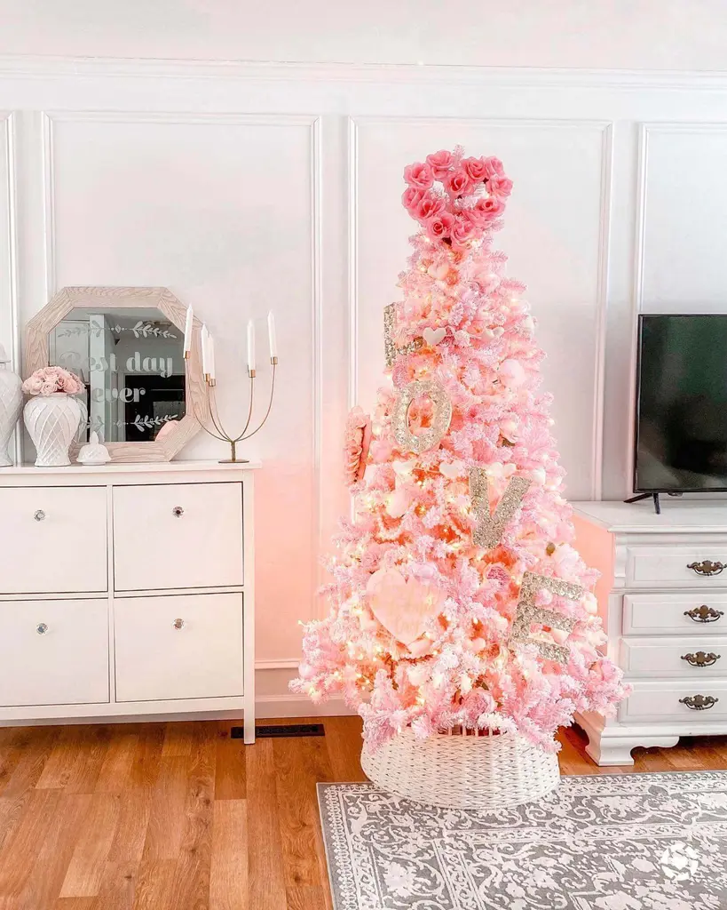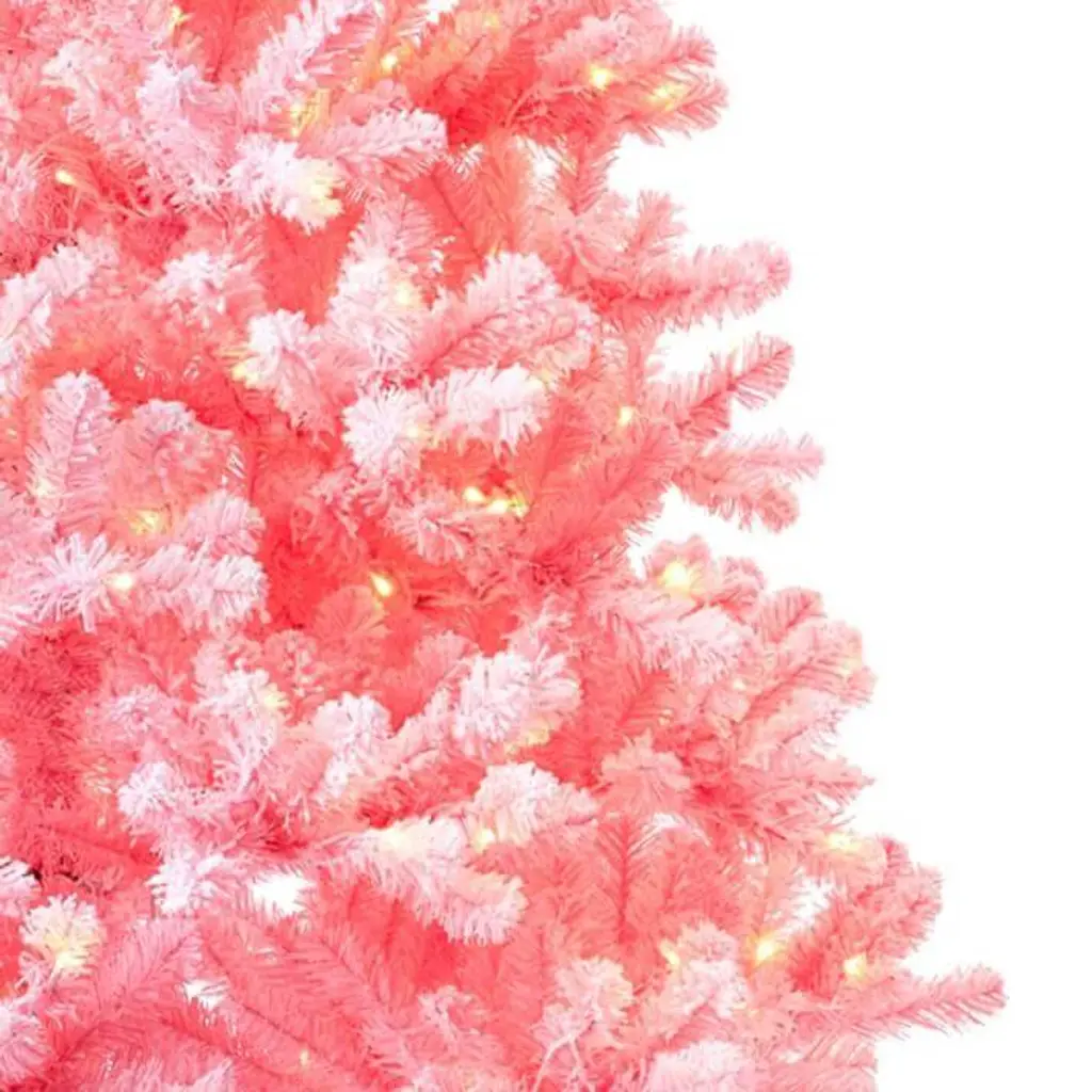 7.5' Duchess Pink Flock Artificial Christmas Tree With 600 Warm White Led Lights