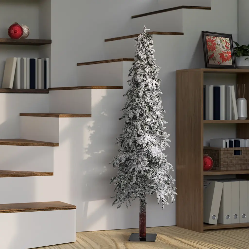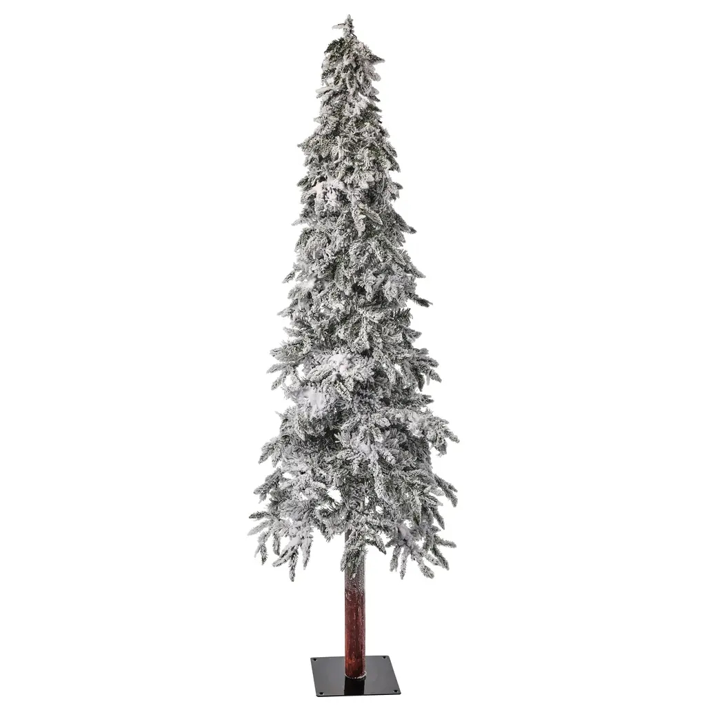 Winter is here, lets celebrate with an adorable 7' Flock Elk Pass Alpine. 668 snow-covered branches create the perfect cozy cabin-in-the-woods feel. With a snow-dusted wood base that makes this tree look even more realistic. The 40-inch diameter offers ample room for ornaments and decorations or can be displayed as is. Whether placed in your living room, foyer, or office, it is a stunning centerpiece for your festive celebrations. Product may ship compressed, gentle shaping and primping can help match the size of the image shown.
