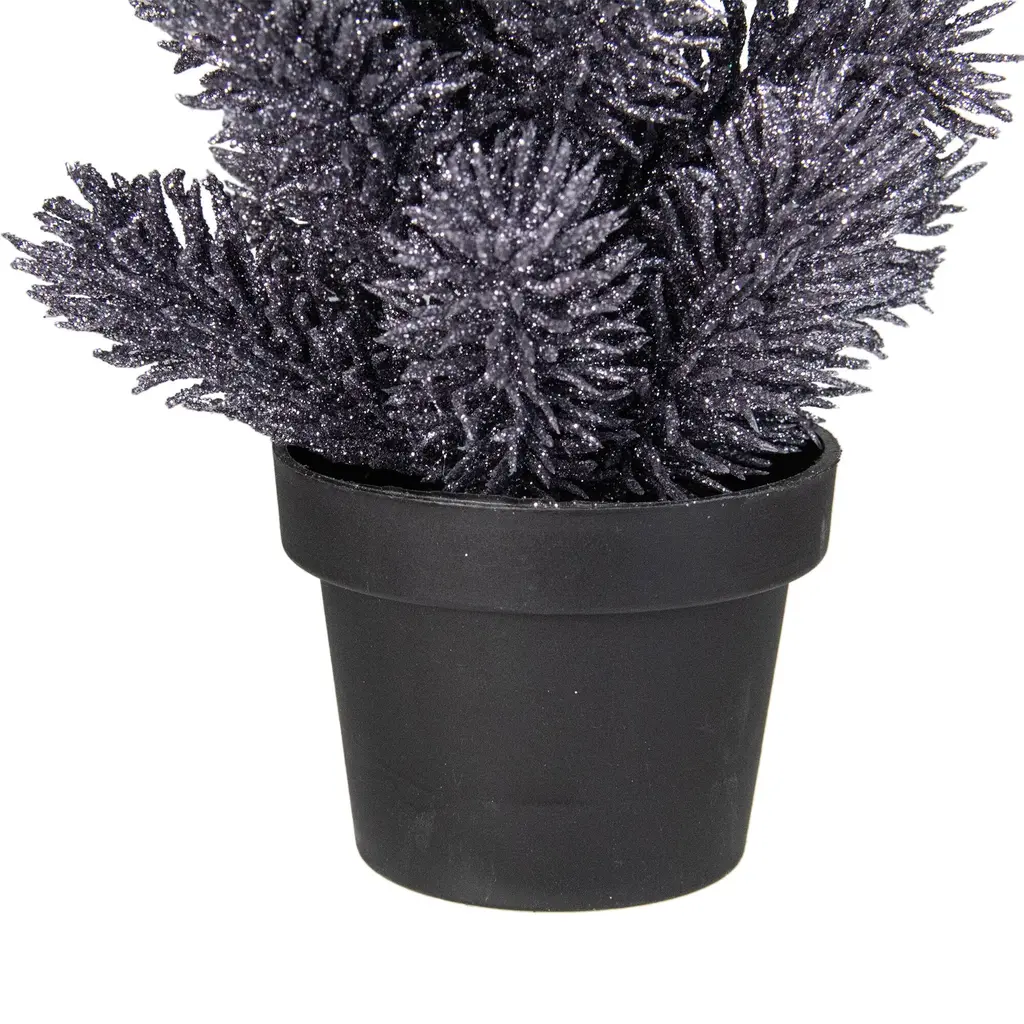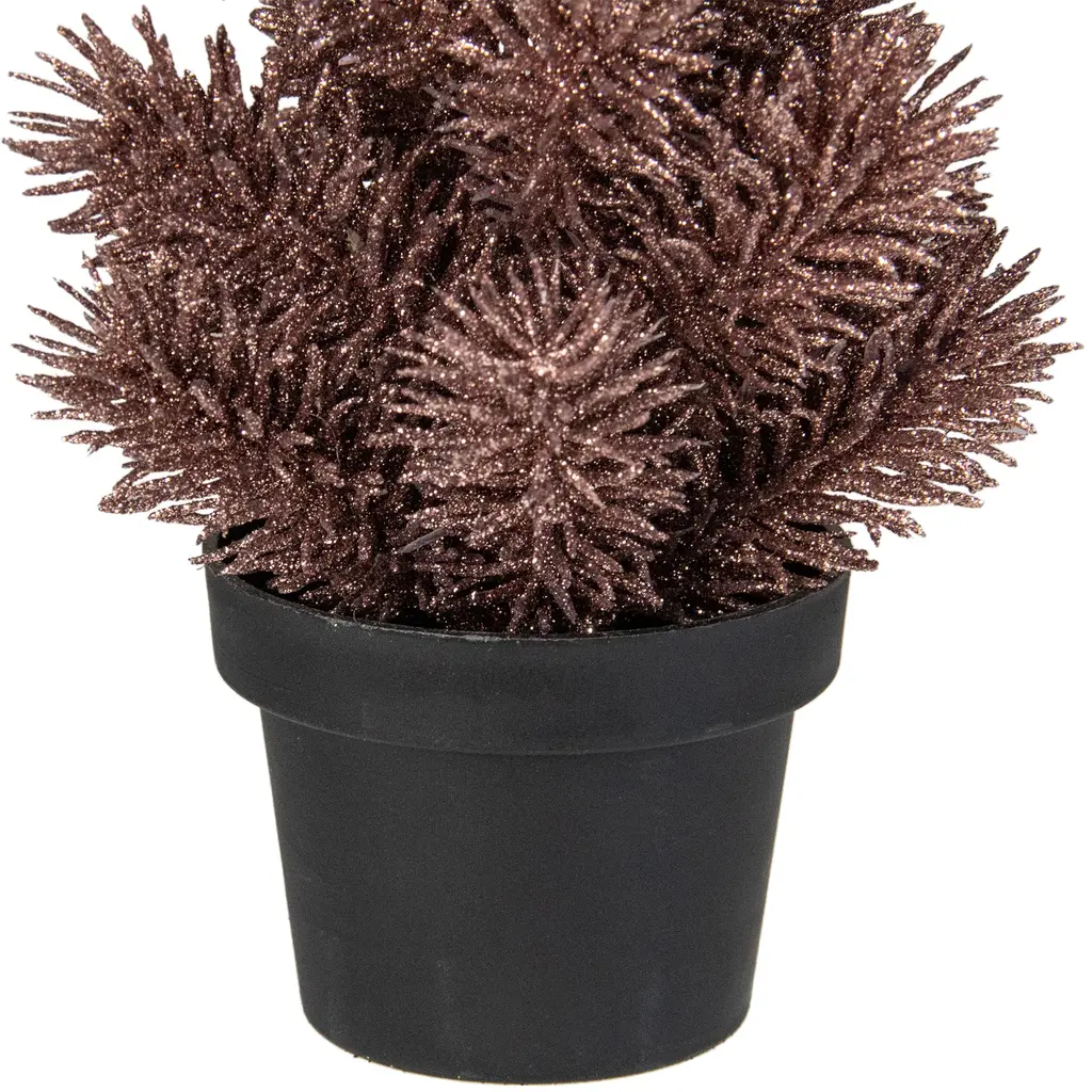 Add a bit of glitter and glam to your holiday decor this year with this tabletop Christmas tree decoration. This glitter drenched tree simply adds to the holiday spirit by itself or in a display. Perfect for space-challenged homes, table centerpieces for a party or your home, or in your office space! Features: Tabletop champagne artificial Christmas tree Comes in a black plastic base Tree can not be removed from the base Tapered base measures 3 inches on top and 3 inches on the bottom For indoor use only Weighted base for stability Dimensions:8.5" high x 4" diameter Material(s):plastic