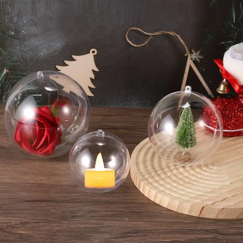 Description:Plastic Ornament Balls: The hanging globe is made from clear acrylic, which is durable and designed to withstand regular use, is not easy to break, easy to clean and maintain, ensuring that the ornaments look for a long timeOpening for Filling: The globes can be disassembled into two parts, and come with an opening design for filling, allowing you to customize the look with different fillings, the balls with decorative items are always attractive, whether hanging or laying flat on the tableEasy to Use: You just kind of snap them together and attach the ornament to your desired location by the line, then fill the globe with small trinkets, confetti, or other decorative items to create a unique and personalized lookWide Application: Great for Christmas decorations, DIY crafts, weddings, parties, and home decor, can be filled the decorative ornaments to add a festive touch to home decoration, events wedding decor centerpieces, or backdrop decorationsSpecification:Material: AcrylicColor: ClearDiameter: 8 cm/3.1"Opening Diameter: 4.5 cm/1.8"Package Included: 8 Pcs x Acrylic Hanging Globe