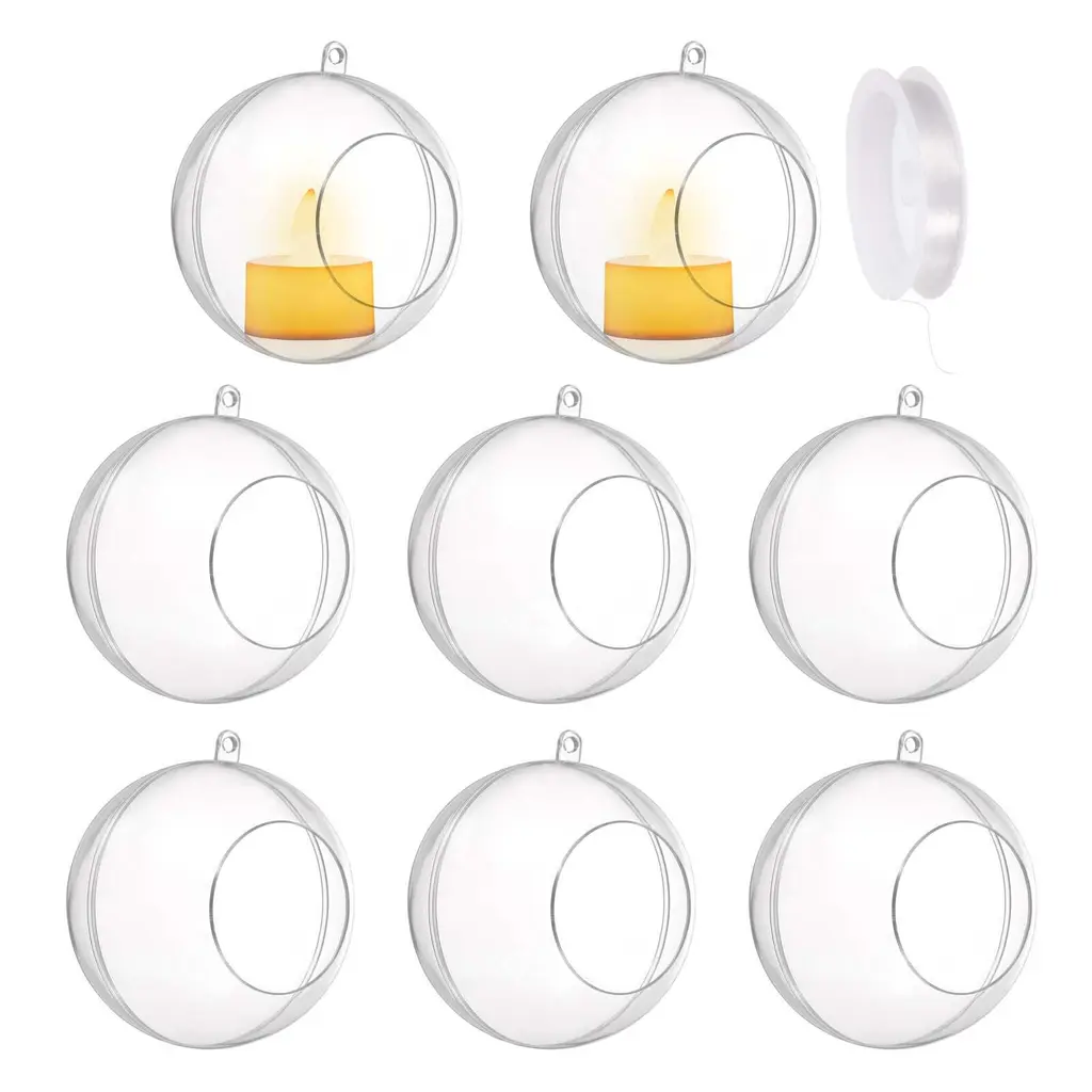 8 Pcs Hanging Tealight Holders Globes Acrylic Refillable Balls For Home - 4"