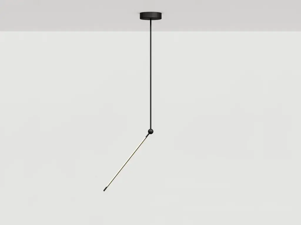 Aaro ceiling lamp by Simon SchmitzDimensions: D 16 x W 16 x H 148 cmMaterials: Aluminum, SteelAll our lamps can be wired according to each country. If sold to the USA it will be wired for the USA for instance.Ceiling lamp in steel and aluminium. Simon Schmitz wanted to create an as fluid motion as possible, which immediately lead him to the sphere. The end result is an object that seems to be moved by the wind. It revolves effortless around it's centerpiece, like planets orbiting around each other.Simon Schmitz, born in Arnsberg, set up his studio in Hamburg after completing his studies at the School of Art. There he discovered the freedom, autonomy and responsibility to be a designer. This taught him everything he needed to know about form, materials, processes and most importantly: the context.
