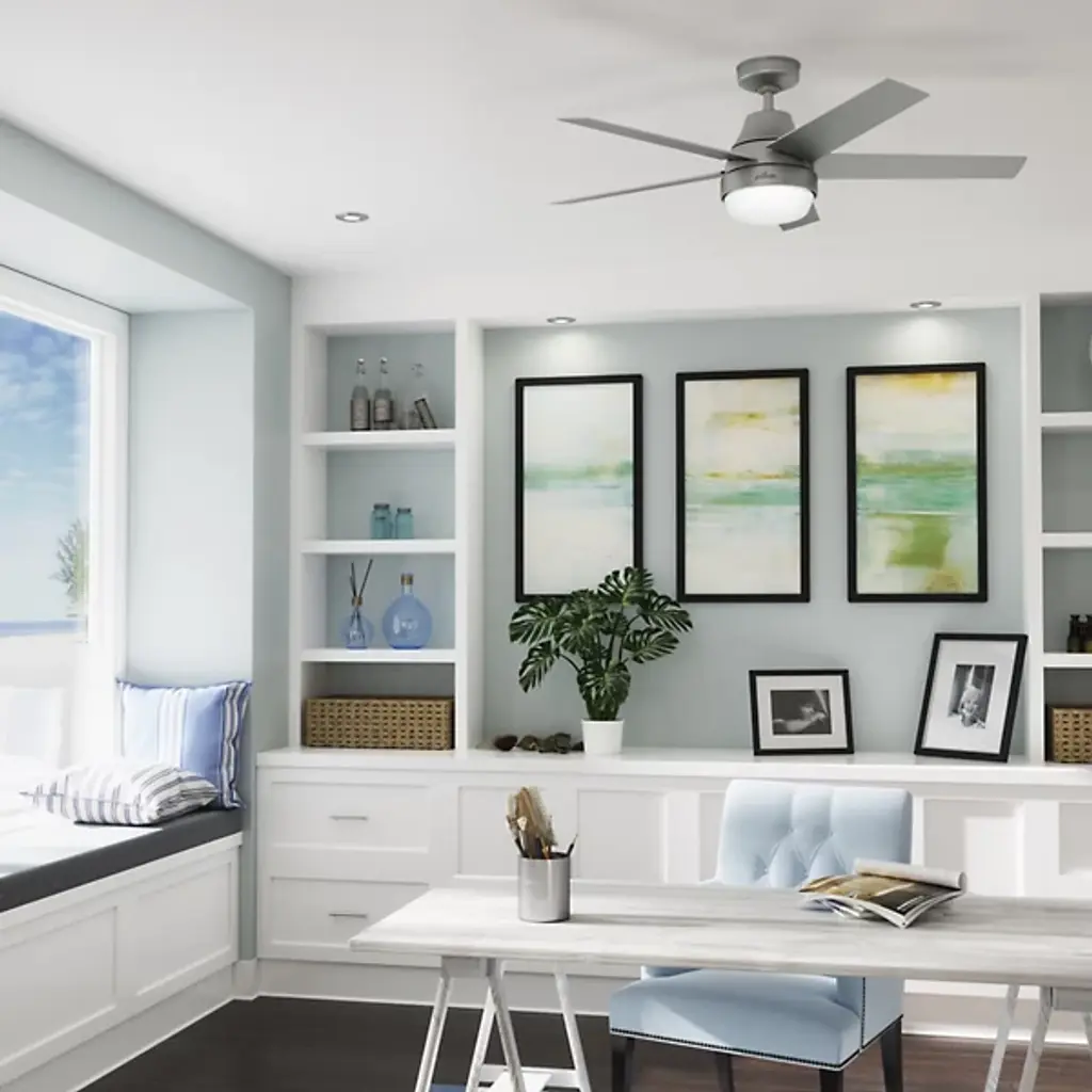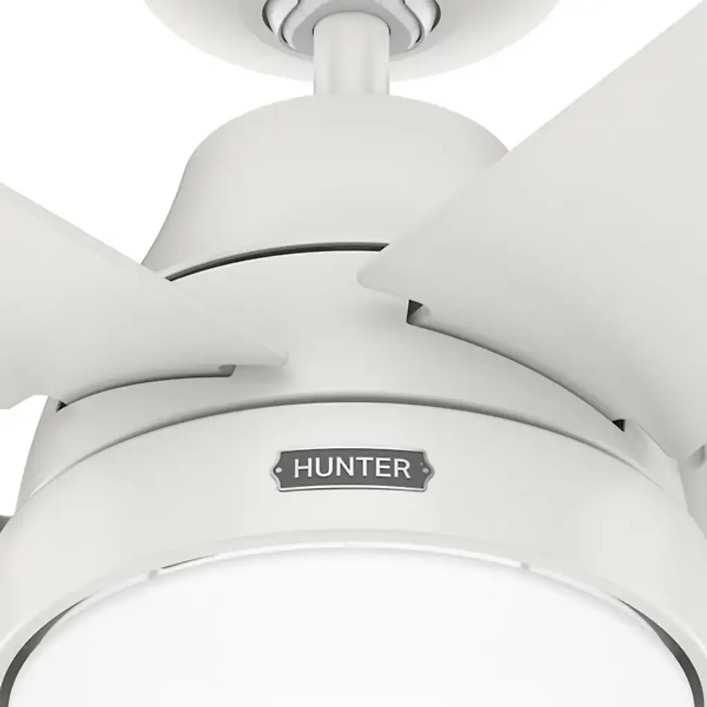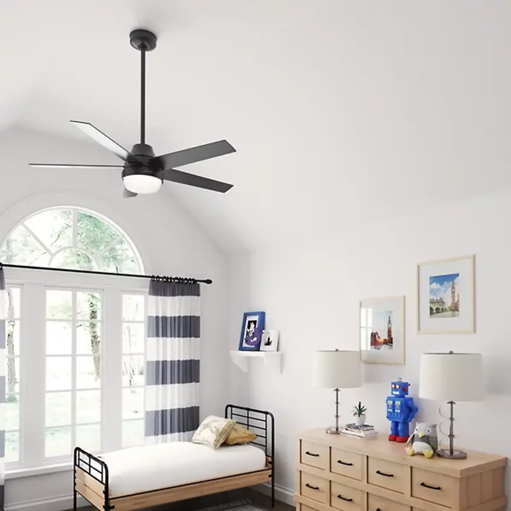 Simple yet stylish, the Aerodyne LED Smart Ceiling Fan elevates the décor of the home with a clean silhouette. A set of five smooth blades with sharp-angled ends extend from a round central body that drops slightly from the ceiling. The base of the centerpiece is a glass shade that houses a pair of crisp bulbs. The light emanating into the room is bright even, creating the ideal ambiance as the four speeds of the blades work to sooth the environment of the room throughout the year.