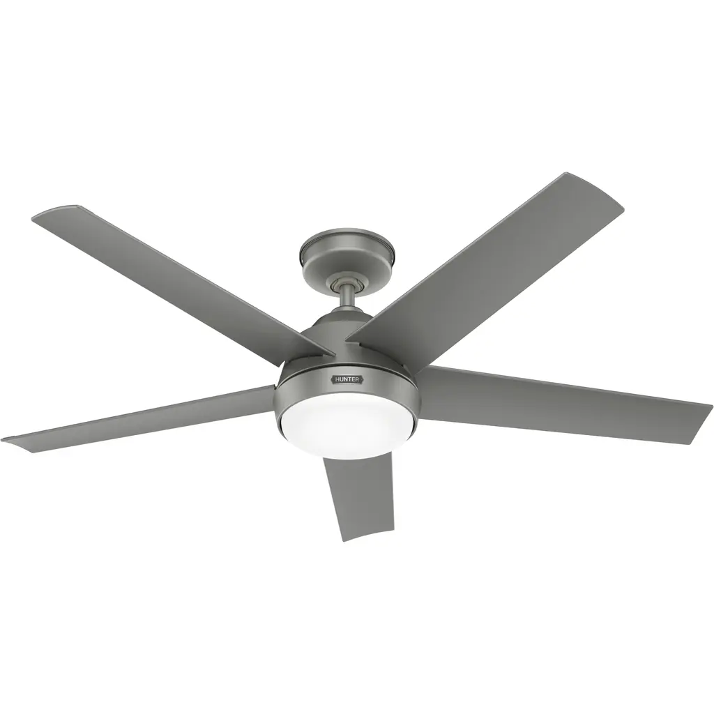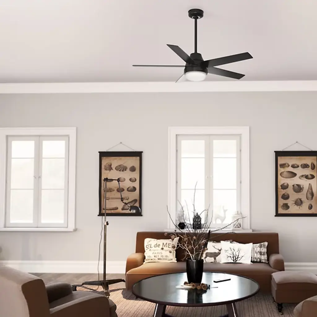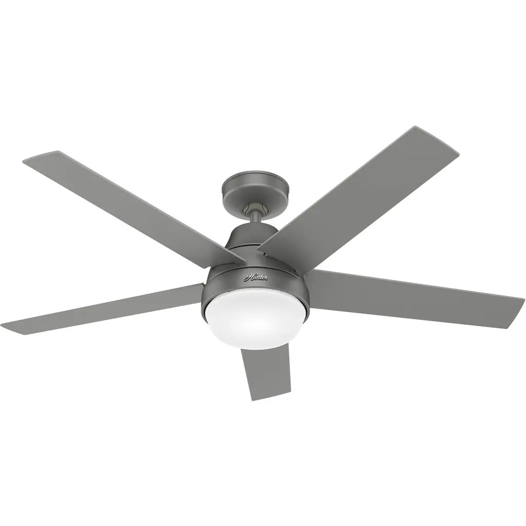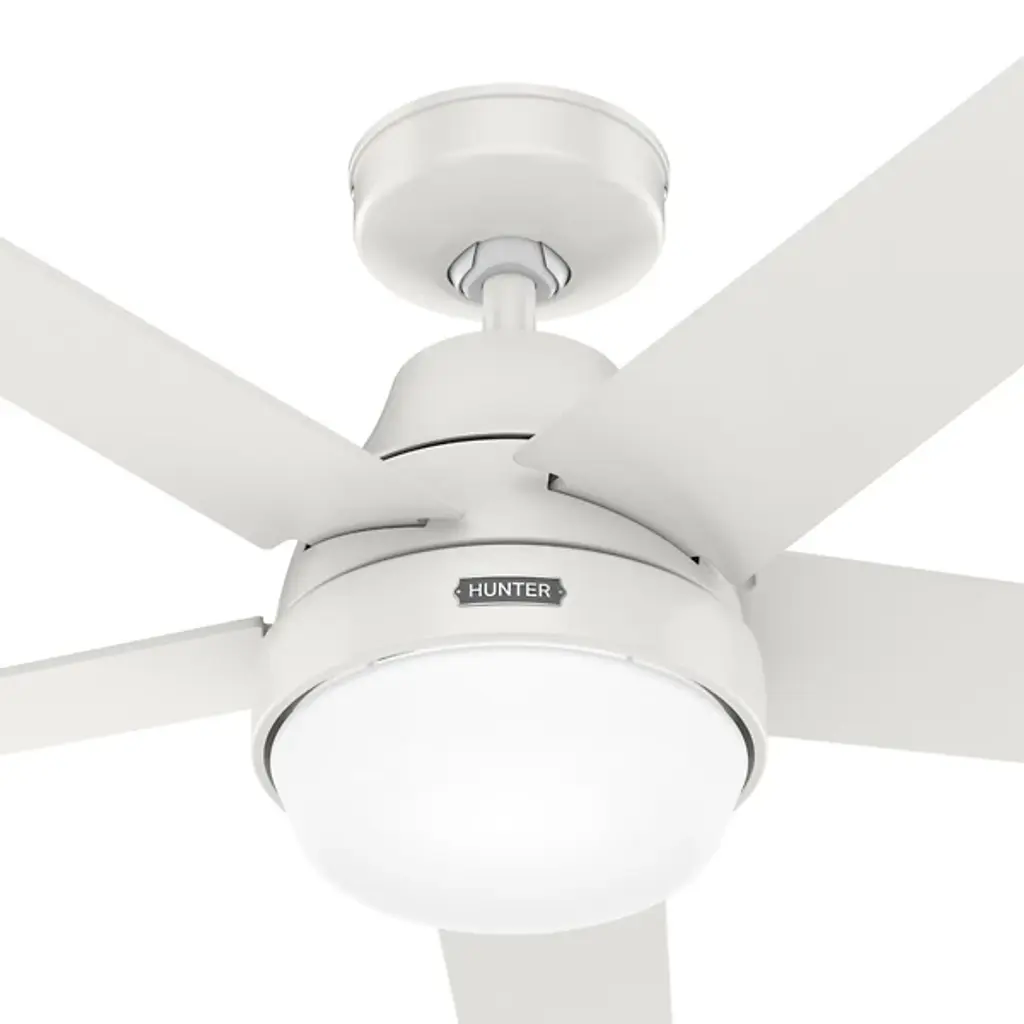 Simple yet stylish, the Aerodyne LED Smart Ceiling Fan elevates the décor of the home with a clean silhouette. A set of five smooth blades with sharp-angled ends extend from a round central body that drops slightly from the ceiling. The base of the centerpiece is a glass shade that houses a pair of crisp bulbs. The light emanating into the room is bright even, creating the ideal ambiance as the four speeds of the blades work to sooth the environment of the room throughout the year.