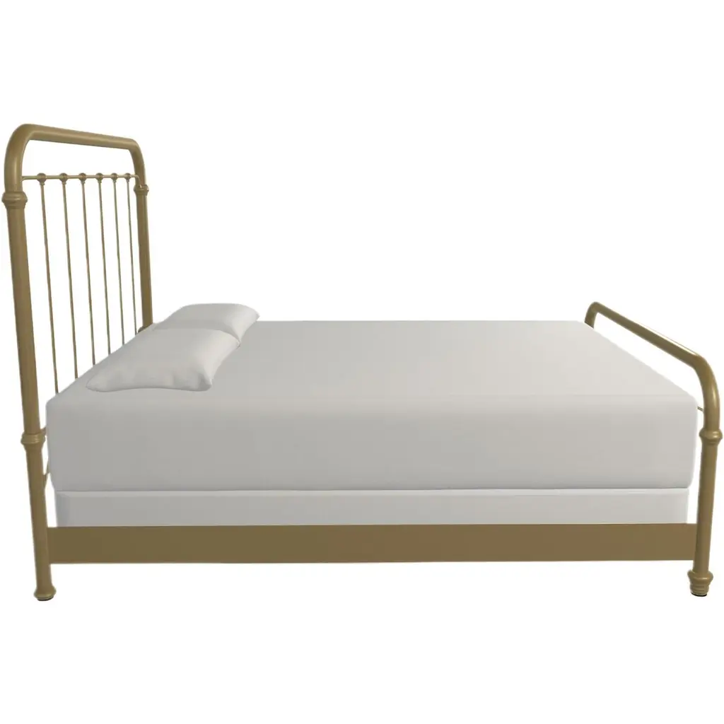 Exclusive to One Kings Lane, the Alyssa Bed brings timeless elegance and vintage-inspired charm to any bedroom. Crafted from sturdy iron, its structured silhouette—featuring a gracefully curved headboard and footboard—offers a nod to classic turn-of-the-century design while blending seamlessly with both traditional and modern interiors. The clean lines and subtle architectural details make it a versatile centerpiece, whether anchoring a sophisticated master suite or adding character to a guest room. Designed for lasting style and durability, this bed requires both a mattress and a standard box spring, and is available in a range of sizes to suit your space.