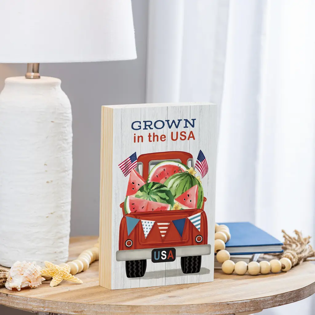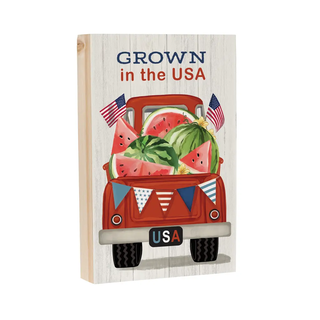 American Classic Sign Wood Block "Grown In The Usa" Truck, 8"l X 12"h
